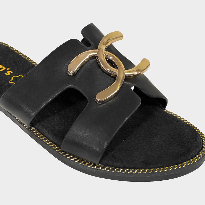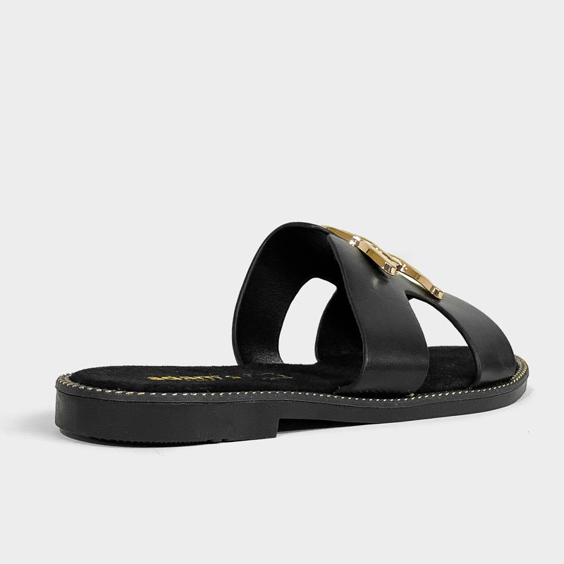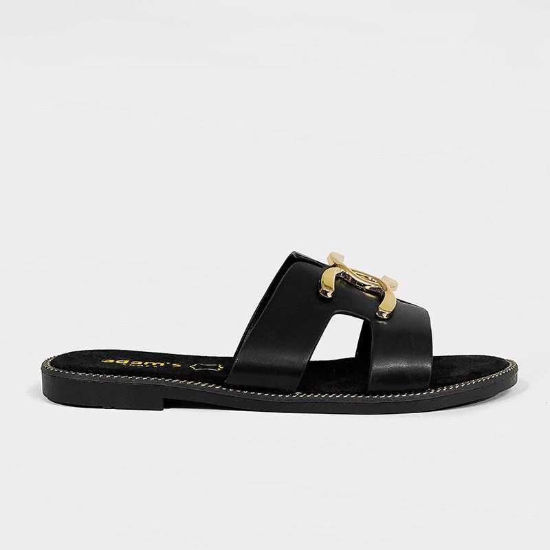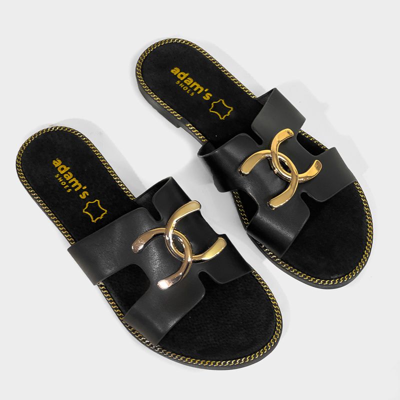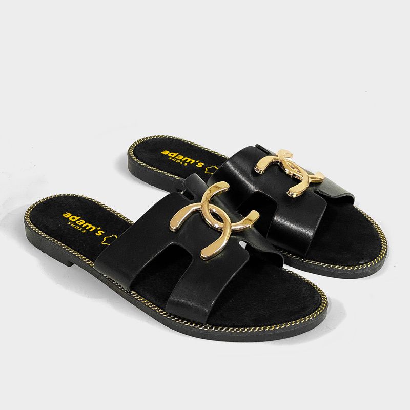 Σανδάλια της Adam’s από γνήσιο δέρμα σε μαύρο χρώμα. Διαθέτουν αναπαυτικό πάτο και μεταλλικό διακοσμητικό σε χρυσό τόνο.