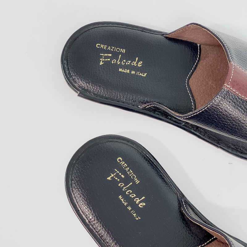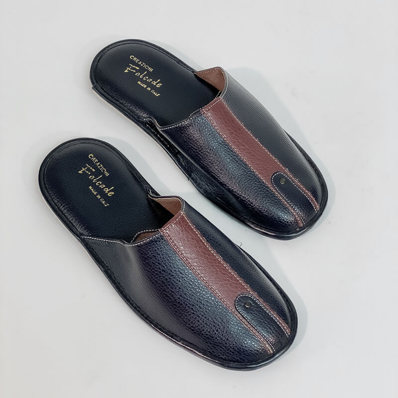 Δερμάτινη ανδρική παντόφλα με μπορντό ρίγα και αναπαυτικό πάτο για το σπίτι ιταλικής κατασκευής από ιταλικό δέρμα.