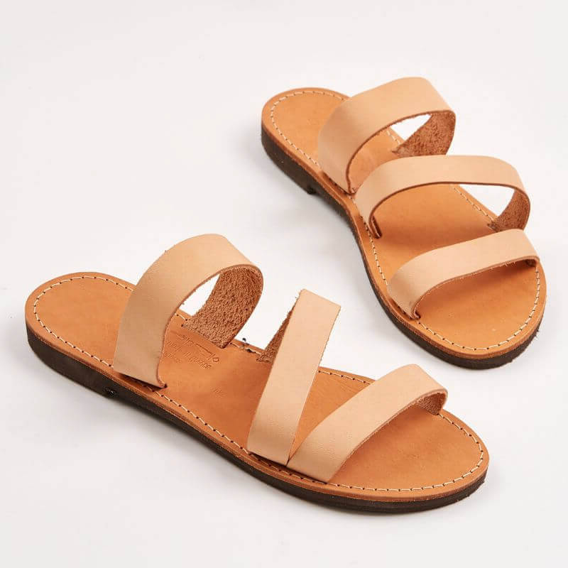 Χειροποίητη παντόφλα Ελληνικής κατασκευής από γνήσιο δέρμα με φαρδιές φάσες. Μια ιδανική λύση για της καλοκαιρινές σας εμφανίσεις.