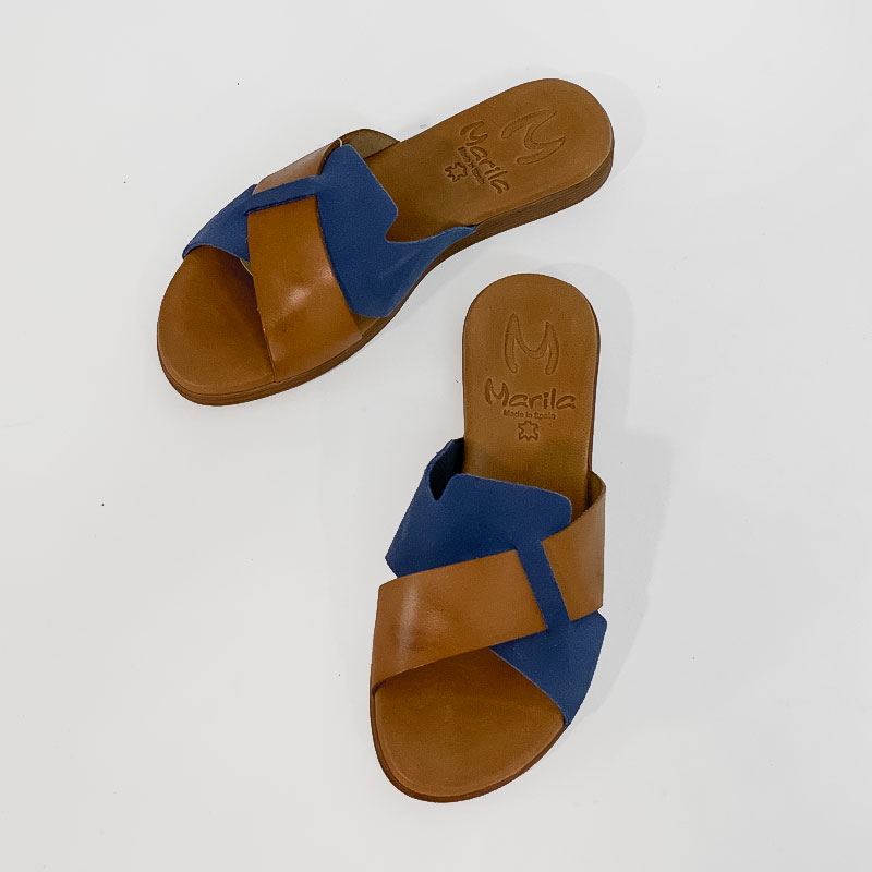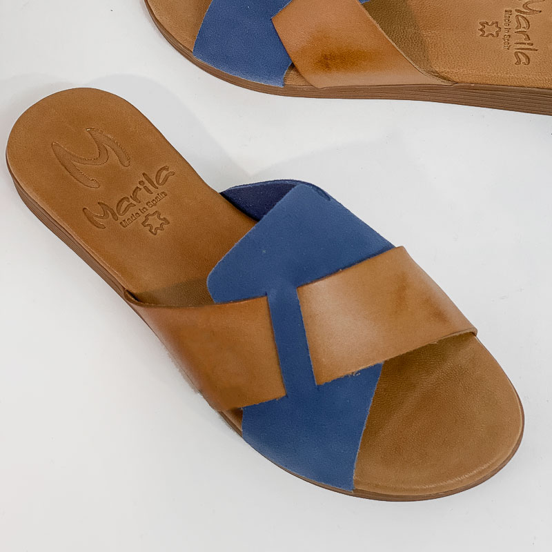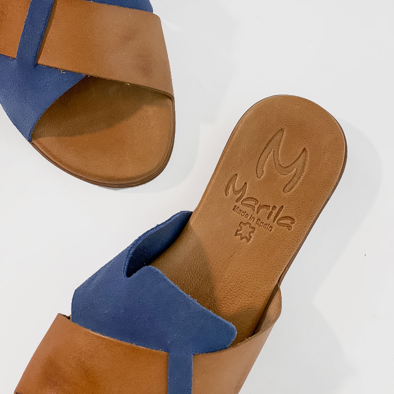 Δερμάτινη παντόφλα Marila κατασκευασμένη από γνήσιο δέρμα στην Ισπανία. Διαθέτει μαλακό πάτο και εξωτερική σόλα από υλικό υψηλής ποιότητας. Μία ανάλαφρη παντόφλα για τις βόλτες σας.