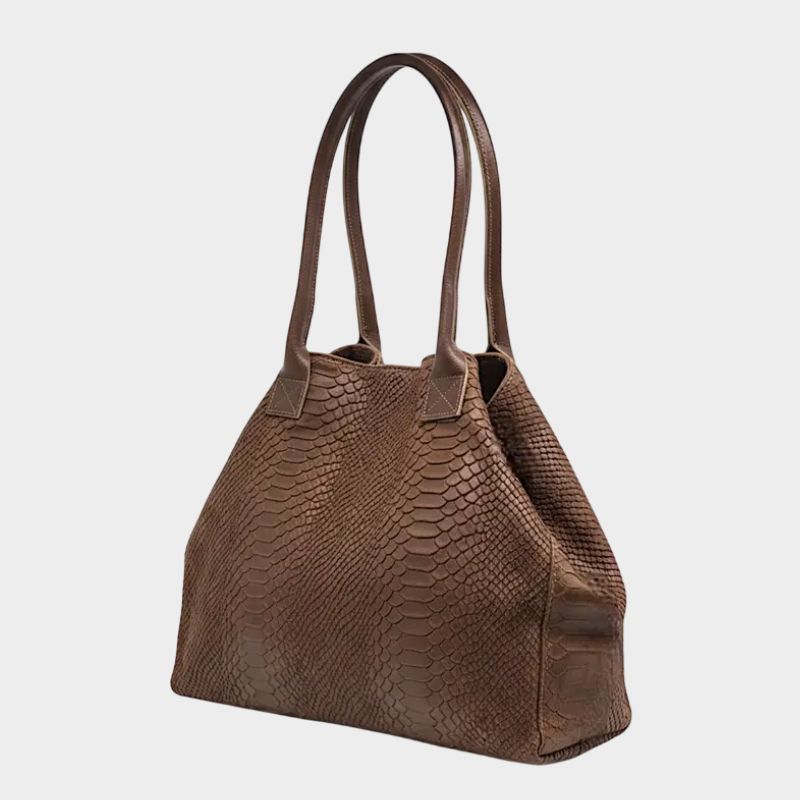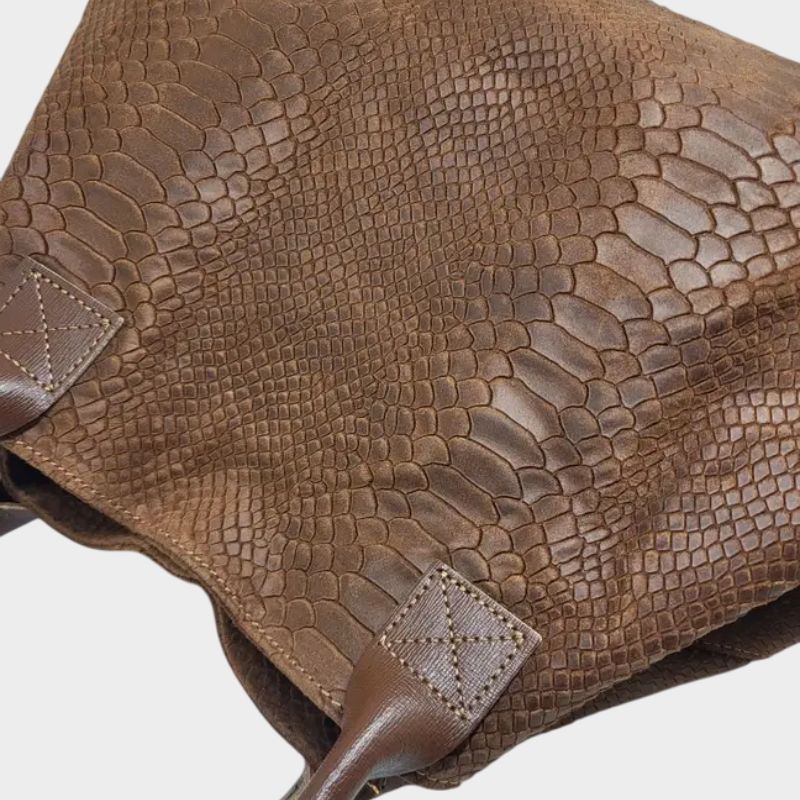 Η τσάντα ώμου Lola είναι ένα κομψό και μοντέρνο αξεσουάρ από γνήσιο δέρμα με ανάγλυφη υφή python, κατασκευασμένη εξολοκλήρου στην Ιταλία. Ο εκλεπτυσμένος σχεδιασμός της και η πρακτική λειτουργικότητά της την καθιστούν ιδανική επιλογή τόσο για καθημερινές εμφανίσεις όσο και για πιο βραδινές εξόδους.