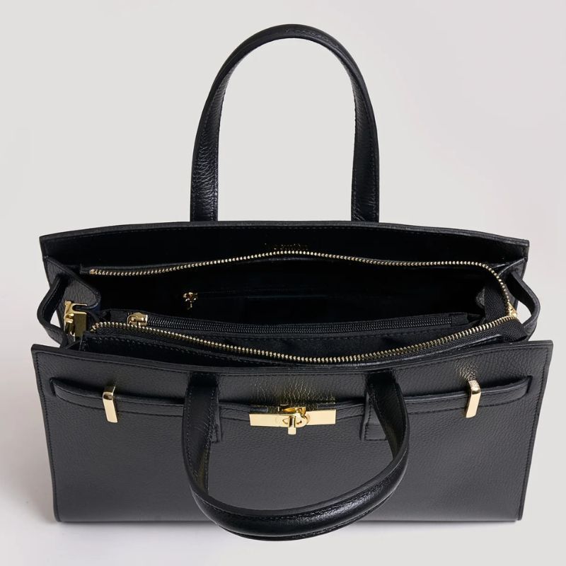 Η Borsa Sveva είναι μια κομψή και ευρύχωρη τσάντα από γνήσιο ιταλικό δέρμα Togo, σχεδιασμένη για γυναίκες που επιθυμούν τάξη, άνεση και διαχρονικό στυλ στην καθημερινότητά τους. Με χρυσά μεταλλικά στοιχεία και άψογη χειροποίητη ποιότητα, συνδυάζει πολυτέλεια και πρακτικότητα σε κάθε λεπτομέρεια.