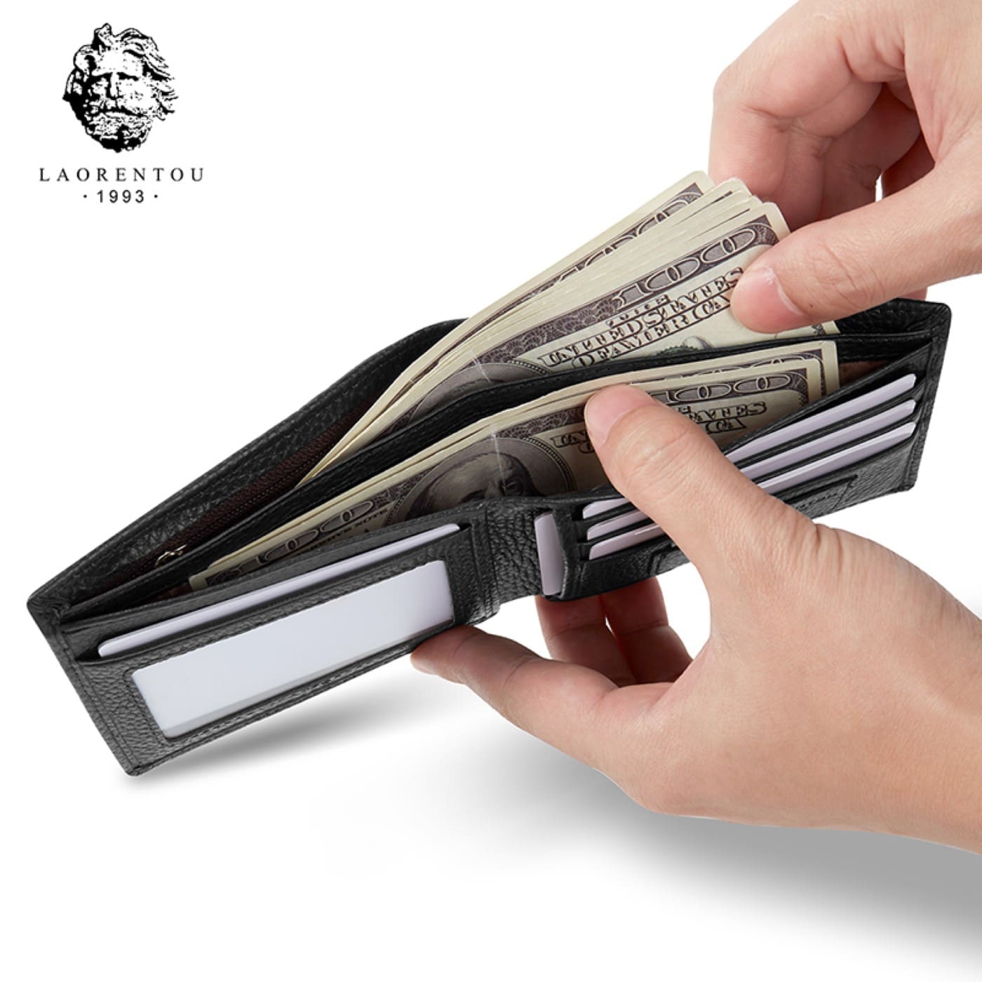 -Υψηλής ποιότητας-Το ανδρικό πορτοφόλι από δέρμα LAORENTOU είναι κατασκευασμένο από πλήρες δέρμα αγελάδας. Το πλήρες δέρμα αγελάδας είναι καλύτερος τύπος γνήσιου δέρματος, έχει καθαρή υφή, καλή ελαστικότητα και απαλή απτική αίσθηση, το πορτοφόλι μας έχει επίσης αυτά τα πλεονεκτήματα. Η επένδυση από πολυεστέρα είναι μεταξένια και δεν θα γρατσουνίσει την ταυτότητα, την πιστωτική κάρτα ή τα μετρητά σας κ.λπ. Ρυθμιστικό με φερμουάρ υλικού, ανθεκτικό στη φθορά και στη διάβρωση και δεν θα κολλήσει. Επιμένουμε πάντα να φτιάχνουμε πορτοφόλια για εσάς με υλικά υψηλής ποιότητας!