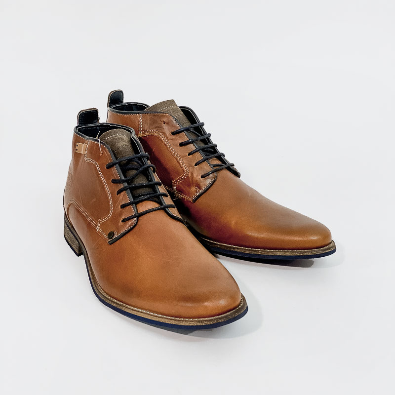 Δερμάτινο χειροποίητο μποτάκι της Bullboxer από γνήσιο δέρμα και δένει με κορδόνια. Έχει δερμάτινο εσωτερικό πάτο και σκληρό εξωτερικό πάτο.