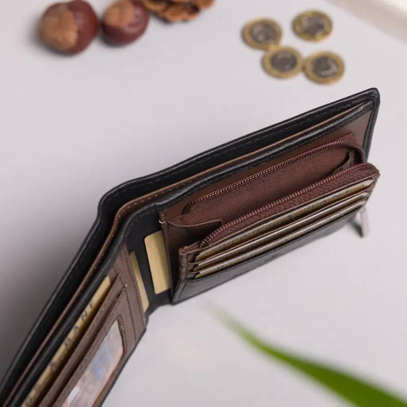 Ένα κομψό και πρακτικό δερμάτινο πορτοφόλι, σχεδιασμένο για όσους θέλουν λειτουργικότητα χωρίς περιττό όγκο. Η τεχνολογία RFID διασφαλίζει προστασία από ανεπιθύμητη σάρωση καρτών, ενώ οι προσεκτικά οργανωμένες θήκες επιτρέπουν εύκολη τακτοποίηση καρτών, χαρτονομισμάτων και κερμάτων. Ιδανικό για καθημερινή χρήση και ανθεκτικό χάρη στην ποιοτική κατασκευή του.