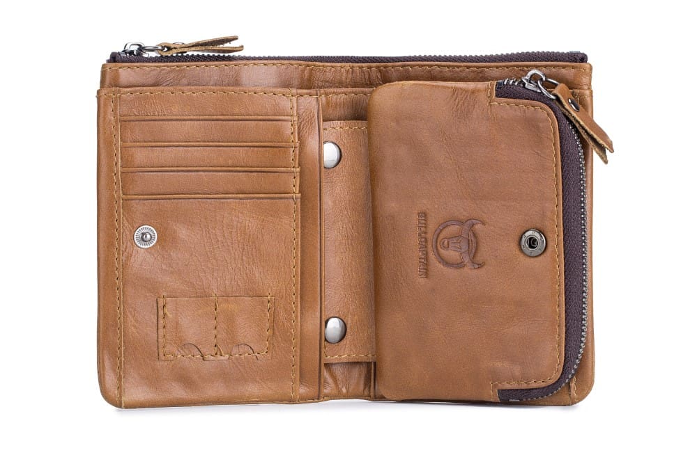 – Αναβαθμίστε το στιλ σας και προστατέψτε τα χρήματά σας με το Δερμάτινο Πορτοφόλι Bull Captain. Κατασκευασμένο από γνήσιο φυσικό δέρμα, αυτό το πορτοφόλι είναι όχι μόνο όμορφο αλλά και ανθεκτικό. Με το μέγεθος που χωράει ελληνική ταυτότητα, διαθέτει επίσης μια θήκη με φερμουάρ για να φυλάξετε τα ψιλά σας και δύο θέσεις για χαρτονομίσματα όλων των μεγεθών.