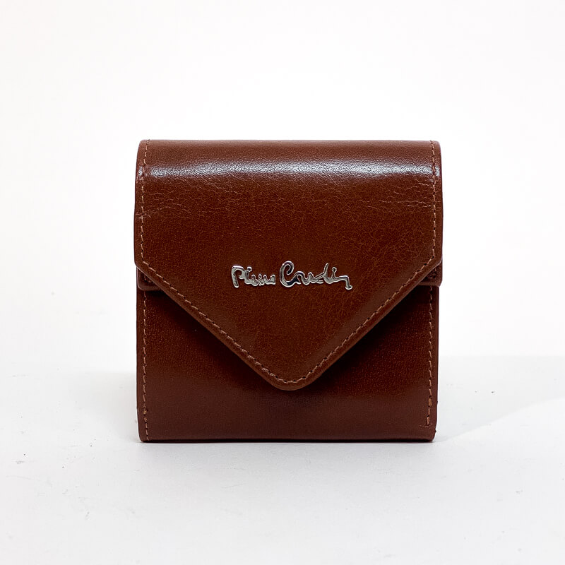 Μικρό πορτοφόλι της εταιρίας Pierre Cardin από γνήσιο δέρμα σε ταμπά απόχρωση.