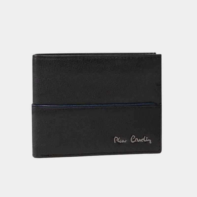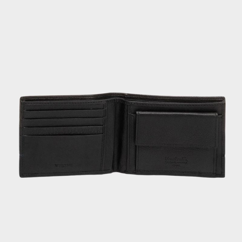 Διαστάσεις: 12 x 9 x 1.5 cm 2 θέσεις για χαρτονομίσματα τσέπη για κέρματα θήκες για κάρτες θέσεις για έγγραφα Υλικό: Γνήσιο δέρμα Μεταλλικό λογότυπο