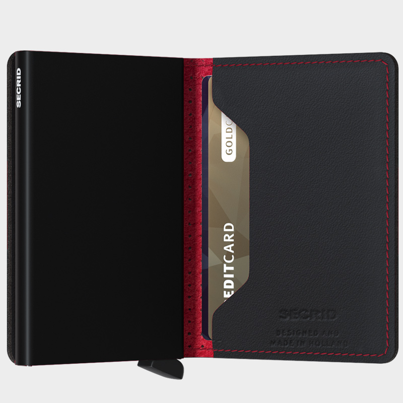 Δερμάτινο Πορτοφόλι Secrid Miniwallet Perforated Black-Red Μαύρο-Κόκκινο