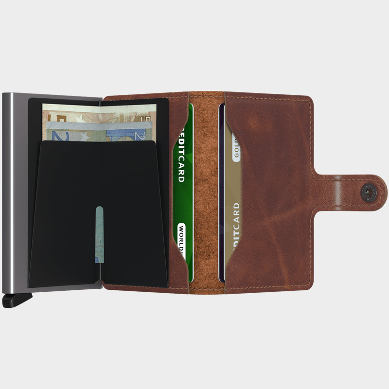 Το Miniwallet είναι ένα μικρό σε μέγεθος, αλλά εξαιρετικά ευρύχωρος τρόπος αποθήκευσης, που συνδυάζει άριστα την ευκολία με τη λειτουργικότητα. Στο εξωτερικό του μέρος μπορούν να αποθηκευτούν αποδείξεις και πολλαπλές κάρτες, ενώ το καρτοθήκη από αλουμίνιο σας επιτρέπει να εξάγετε τις κάρτες σας με μια απλή κίνηση, προσφέροντας ταυτόχρονα προστασία από τον κίνδυνο λυγίσματος, θραύσης και ανεπιθύμητης ασύρματης επικοινωνίας.