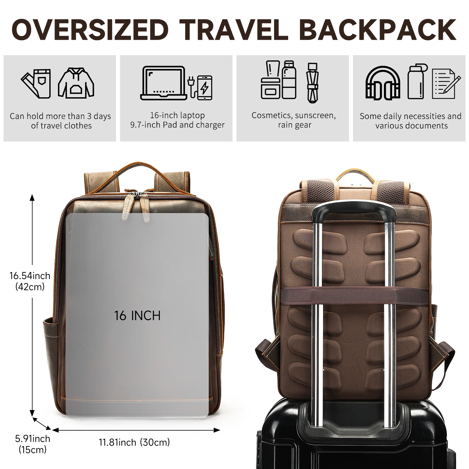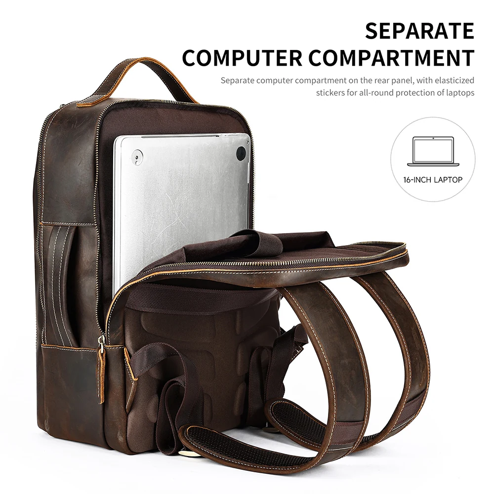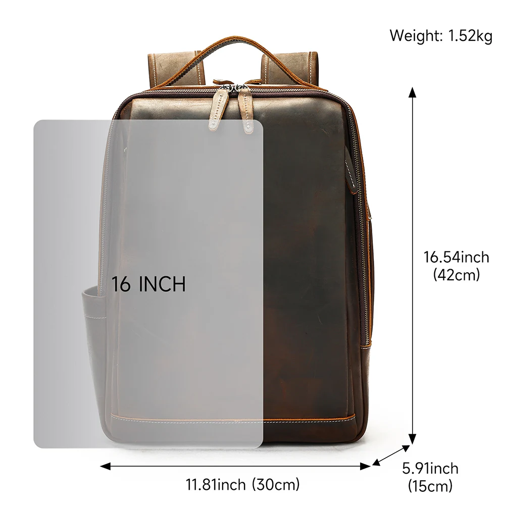 Premium δερμάτινο σακίδιο πλάτης από γνήσιο cowhide δέρμα. Διαθέτει μεγάλη χωρητικότητα, θήκη για laptop 16’’, πολλές οργανωμένες θήκες και εργονομικό σχεδιασμό για άνεση σε κάθε μετακίνηση.