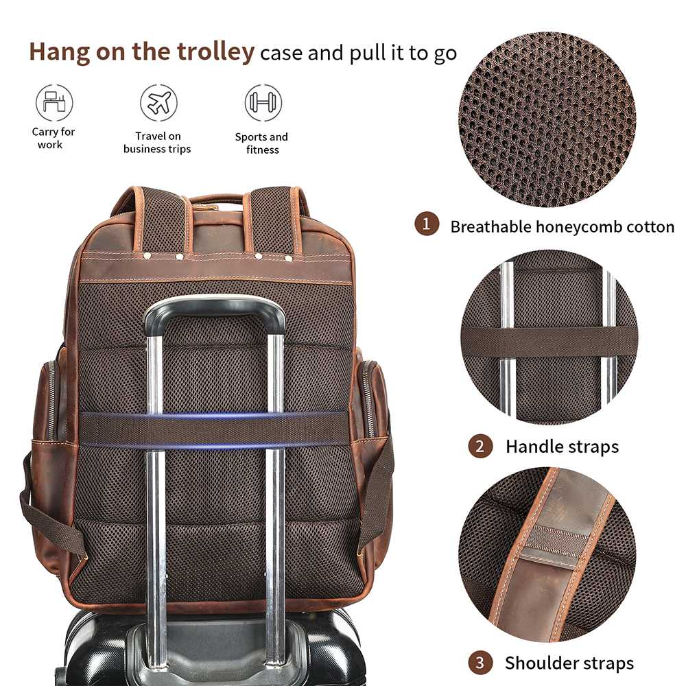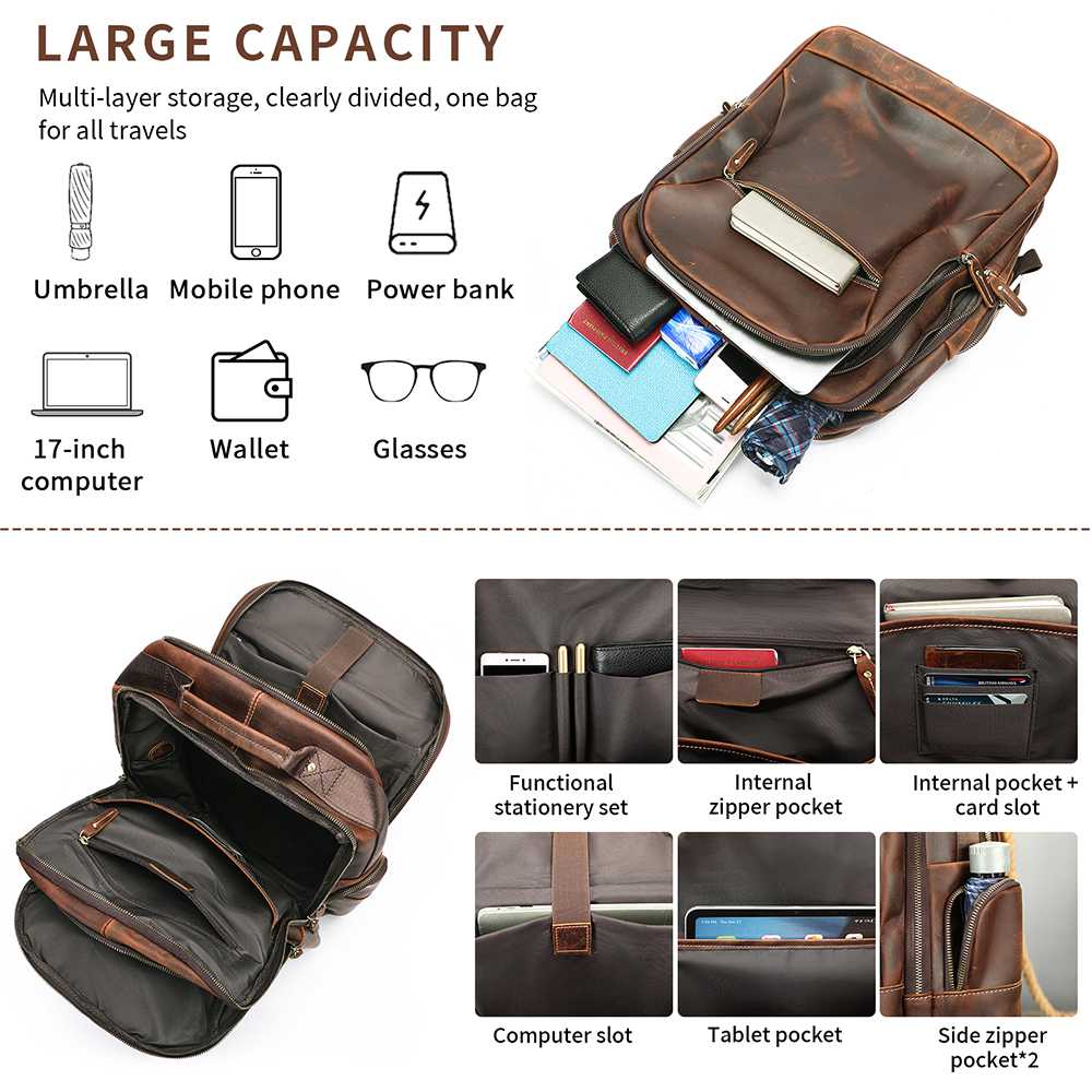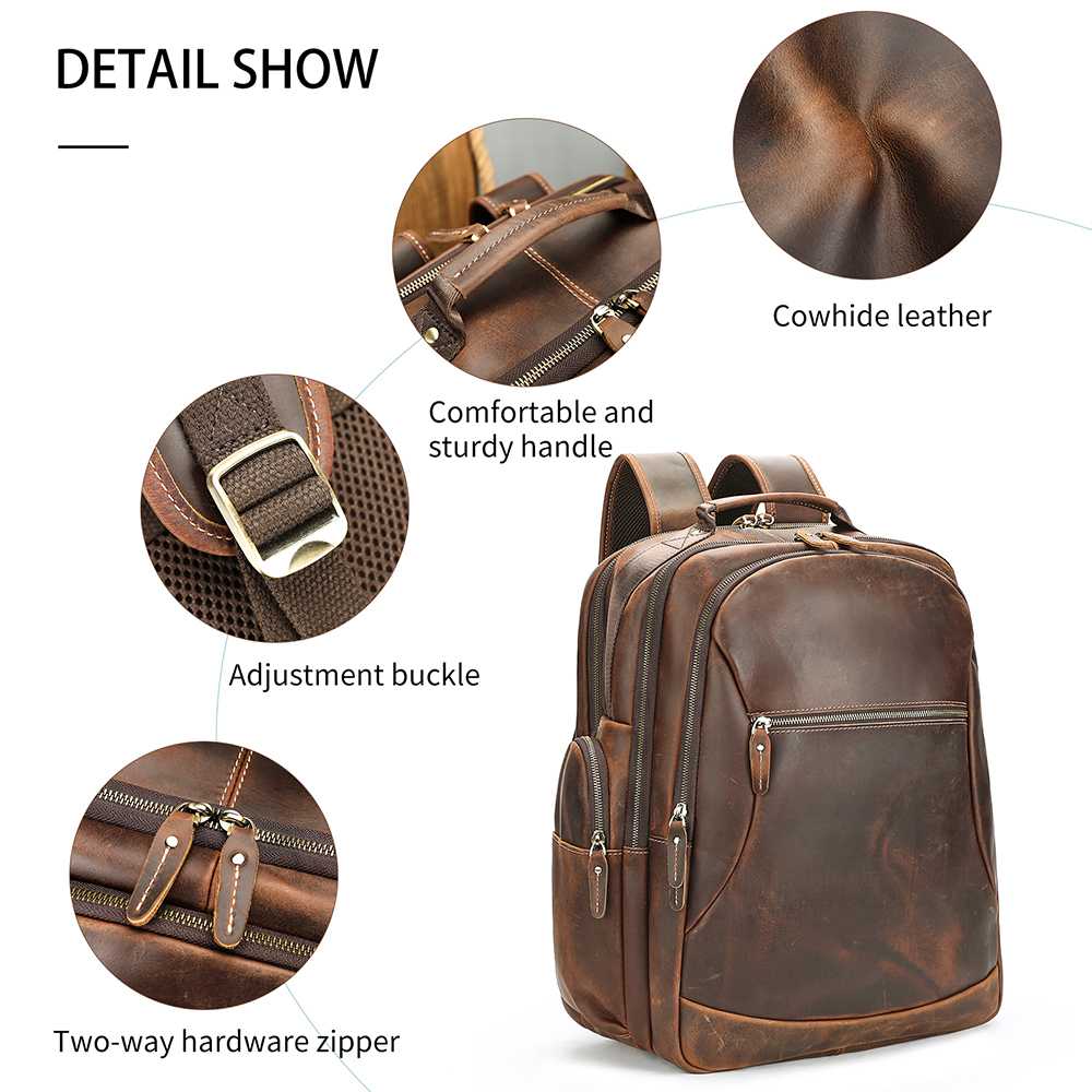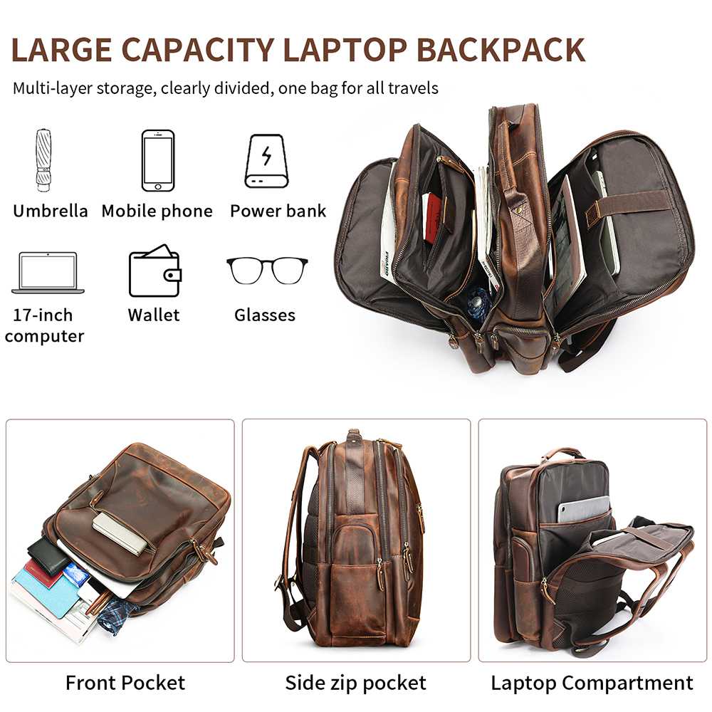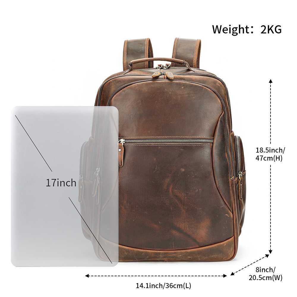 Premium δερμάτινο σακίδιο πλάτης από γνήσιο cowhide δέρμα. Διαθέτει μεγάλη χωρητικότητα, θήκη για laptop 17’’, πολλές οργανωμένες θήκες και εργονομικό σχεδιασμό για άνεση σε κάθε μετακίνηση.