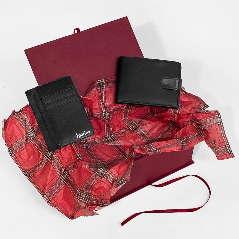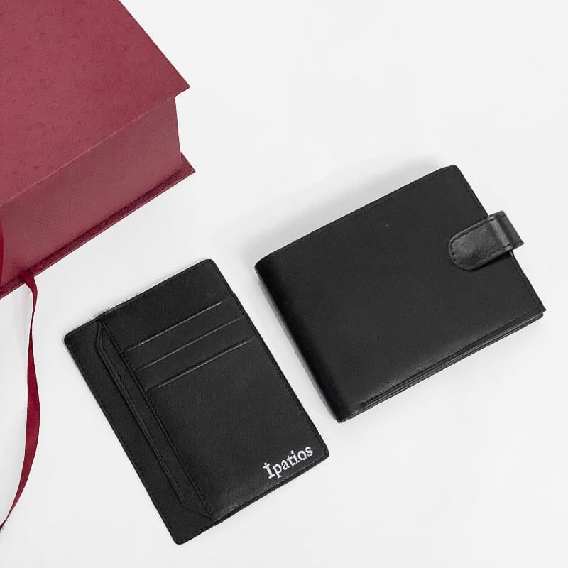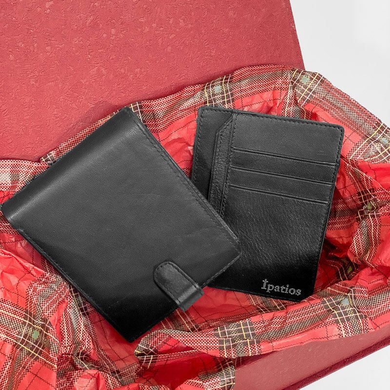 Δερμάτινο σετ δώρου που αποτελείτε από ένα δερμάτινο πορτοφόλι και μία δερμάτινη καρτοθήκη σε μαύρο χρώμα.