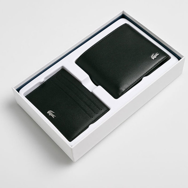 Σετ δώρου Lacoste που αποτελείτε από ένα δερμάτινο πορτοφόλι και μία δερμάτινη καρτοθήκη.