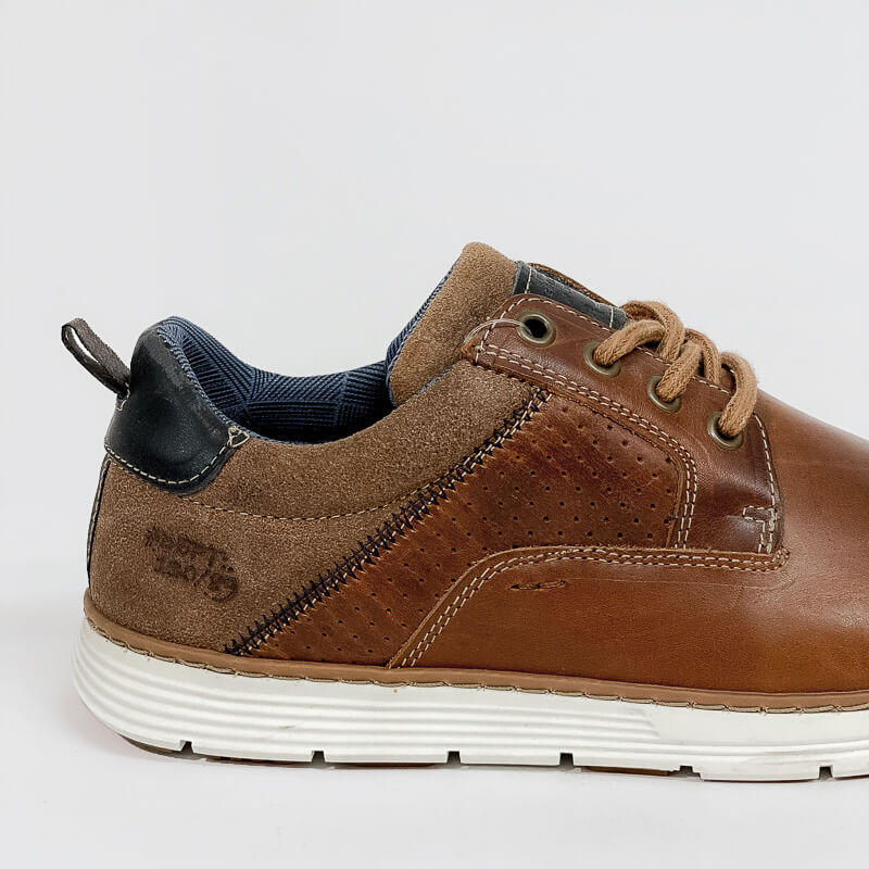 Δερμάτινο χειροποίητο sneaker της Bullboxer από γνήσιο δέρμα και suede χαρακτηριστικά στο πίσω μέρος και δένει με κορδόνια. Έχει μαλακό εσωτερικό και εξωτερική σόλα από λάστιχο με αντιολισθητική δράση. Ένα casual sneaker ολλανδικού σχεδιασμού κατάλληλο για κάθε μέρα.