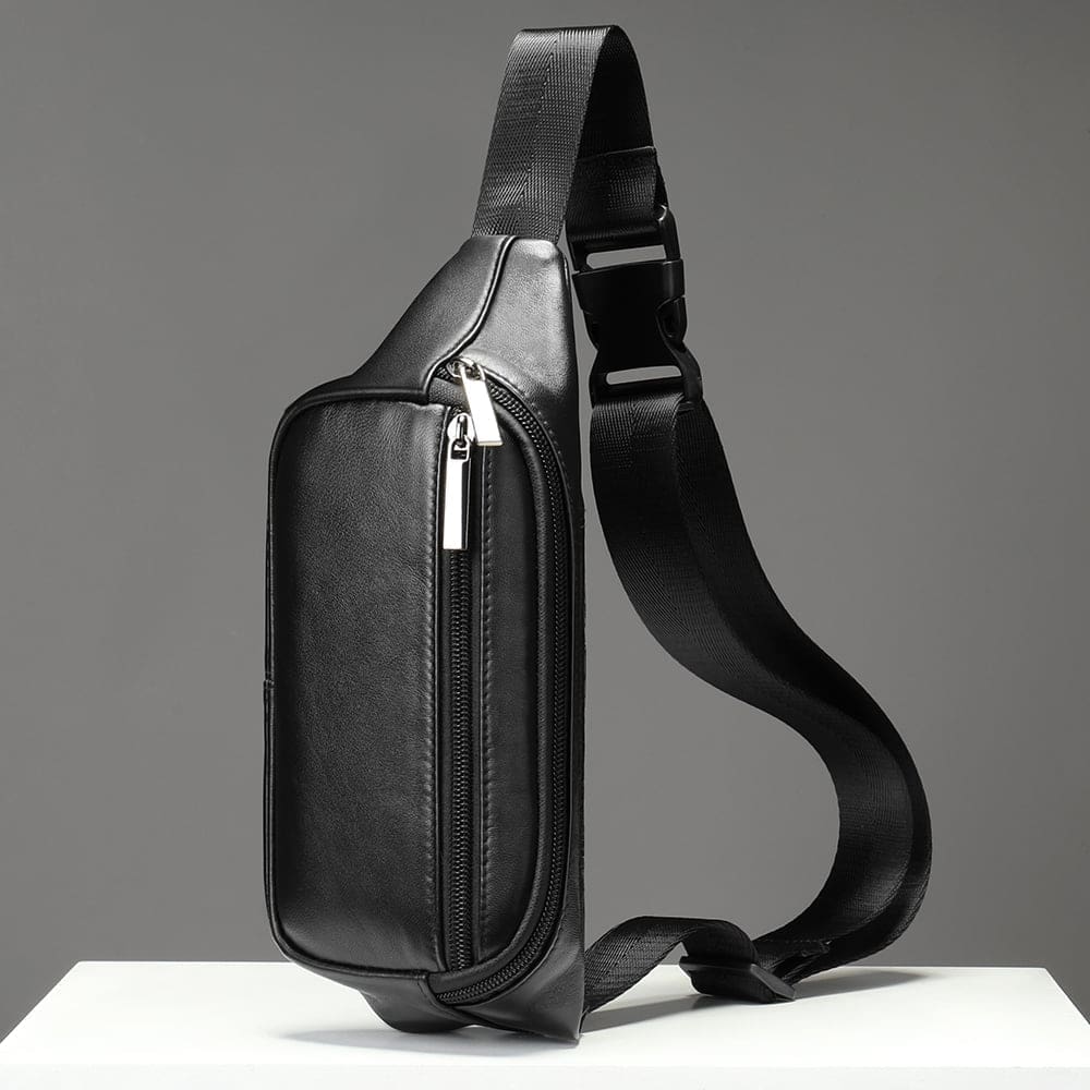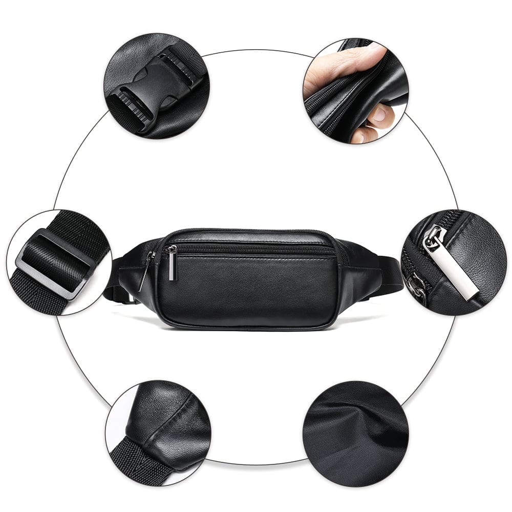 – Με δύο εξωτερικές τσέπες, αυτή η τσάντα μέσης προσφέρει άφθονο χώρο για να μεταφέρετε όλα τα απαραίτητα, ενώ κρατάτε τα χέρια σας ελεύθερα. Το υλικό από γνήσιο δέρμα προσθέτει μια πινελιά πολυτέλειας και ανθεκτικότητας, καθιστώντας αυτή την τσάντα ένα απαραίτητο αξεσουάρ για κάθε κομψό άντρα.