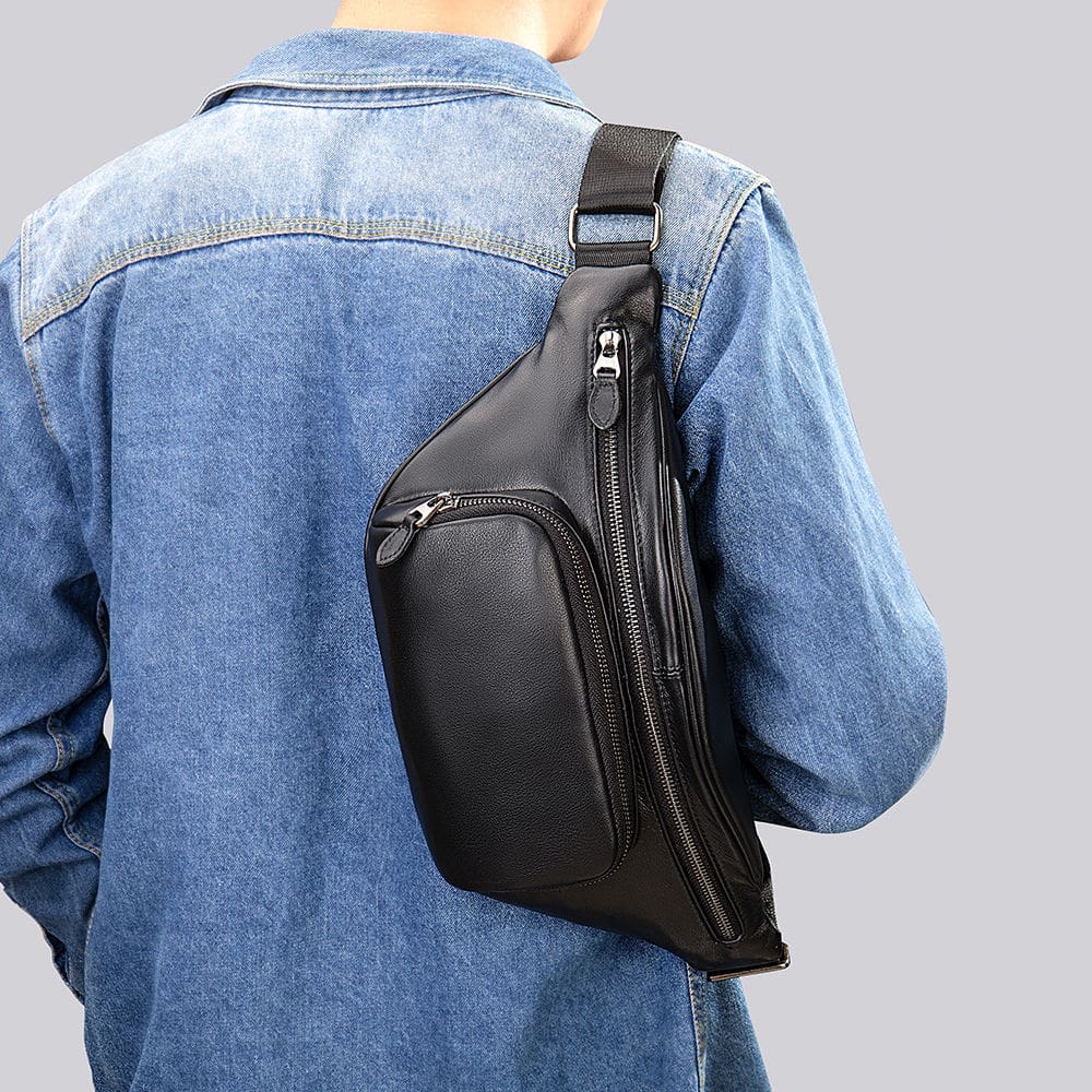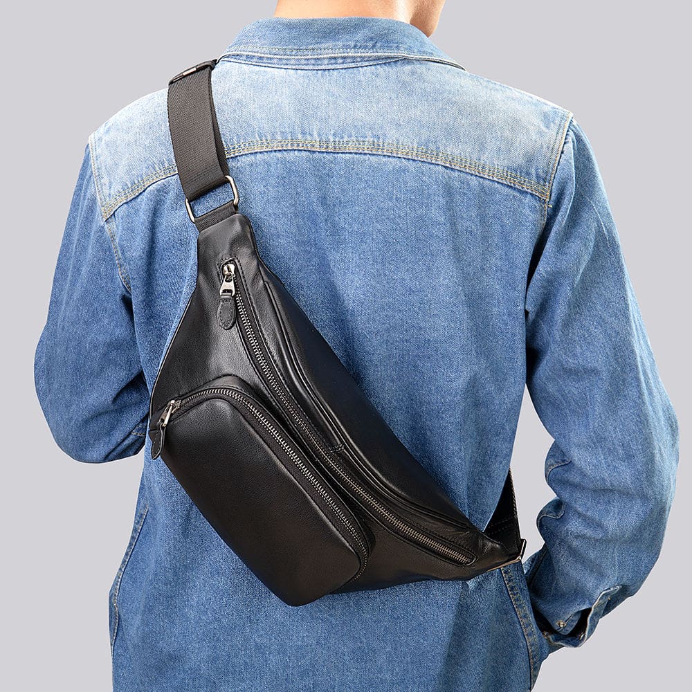 – Με τρεις εξωτερικές τσέπες, αυτή η τσάντα μέσης προσφέρει άφθονο χώρο για να μεταφέρετε όλα τα απαραίτητα, ενώ κρατάτε τα χέρια σας ελεύθερα. Το υλικό από γνήσιο δέρμα προσθέτει μια πινελιά πολυτέλειας και ανθεκτικότητας, καθιστώντας αυτή την τσάντα ένα απαραίτητο αξεσουάρ για κάθε κομψό άντρα.