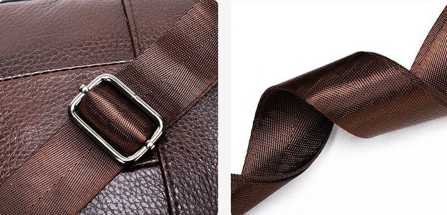 – Αυτή η τσάντα δεν είναι απλώς κομψή, αλλά και πρακτική με τις πολλαπλές θήκες και τις τσέπες της για το πορτοφόλι, το τηλέφωνο και τις κάρτες σας. Κατασκευασμένο από γνήσιο δέρμα, κάθε τσάντα είναι μοναδική στο είδος της λόγω των φυσικών σημαδιών και των παραλλαγών στο δέρμα που προκαλούνται από τη διαδικασία γήρανσης.