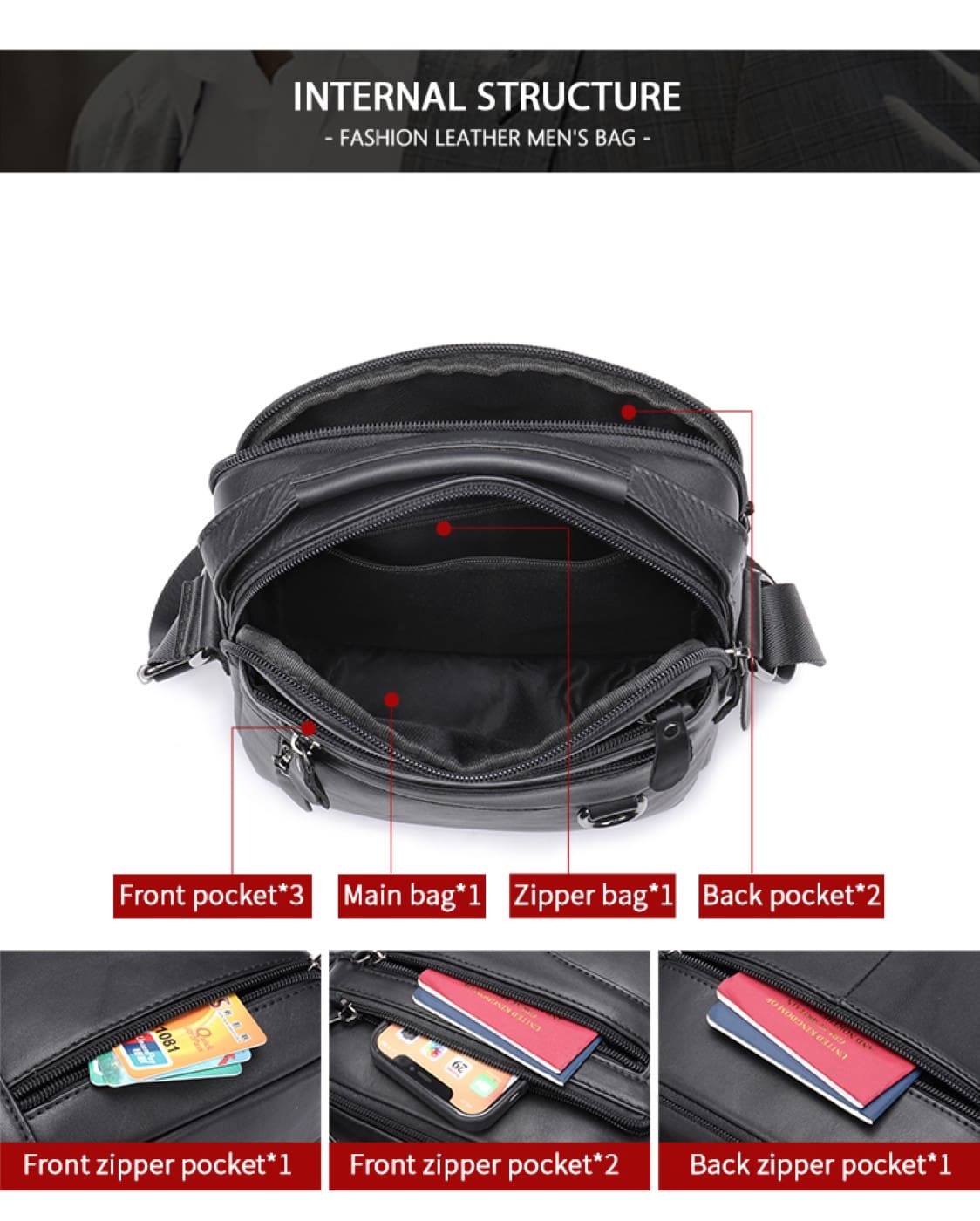 – Αυτή η τσάντα δεν είναι απλώς κομψή, αλλά και πρακτική με τις πολλαπλές θήκες και τις τσέπες της για το πορτοφόλι, το τηλέφωνο και τις κάρτες σας. Κατασκευασμένο από γνήσιο δέρμα, κάθε τσάντα είναι μοναδική στο είδος της λόγω των φυσικών σημαδιών και των παραλλαγών στο δέρμα που προκαλούνται από τη διαδικασία γήρανσης.