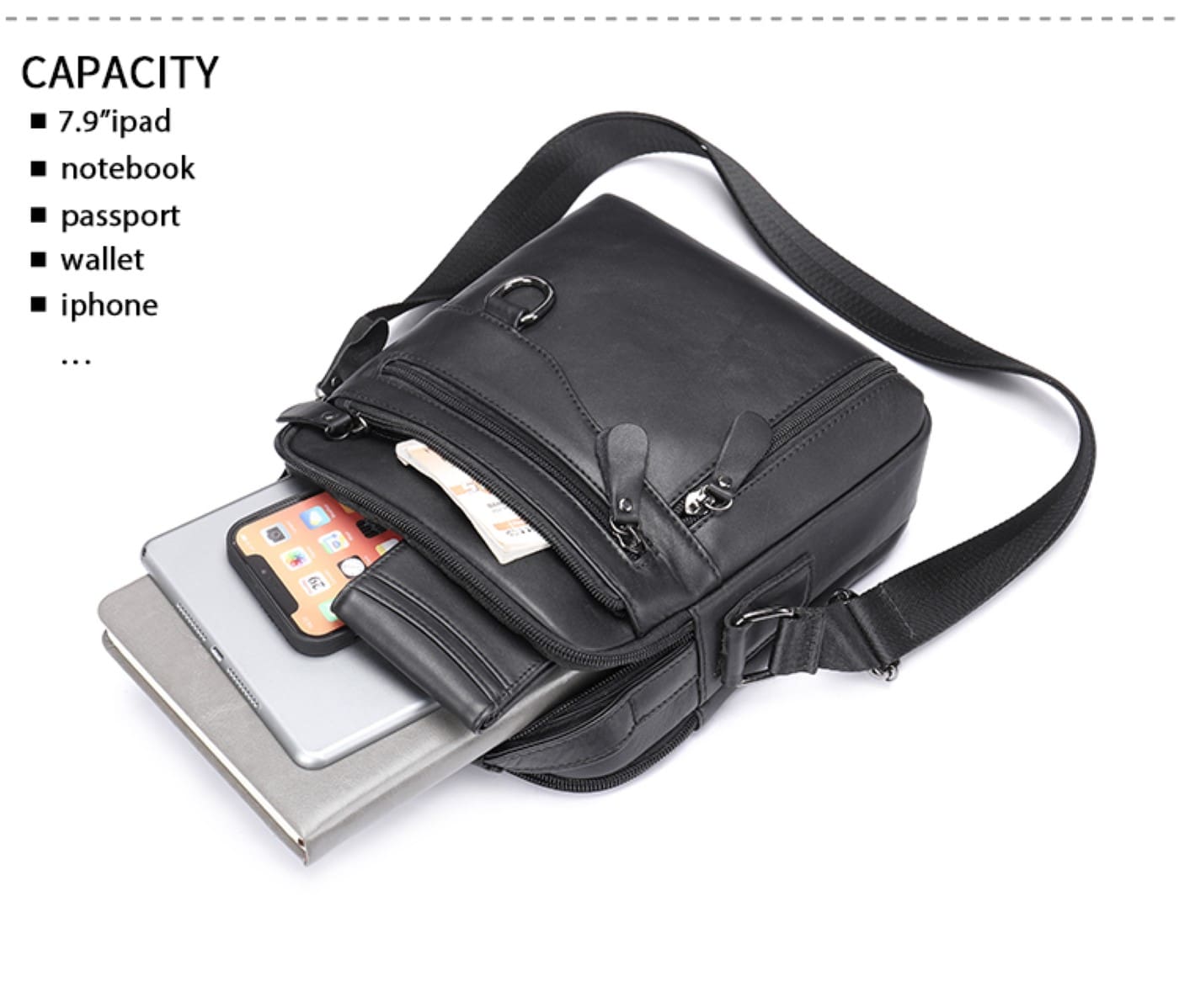 – Αυτή η τσάντα δεν είναι απλώς κομψή, αλλά και πρακτική με τις πολλαπλές θήκες και τις τσέπες της για το πορτοφόλι, το τηλέφωνο και τις κάρτες σας. Κατασκευασμένο από γνήσιο δέρμα, κάθε τσάντα είναι μοναδική στο είδος της λόγω των φυσικών σημαδιών και των παραλλαγών στο δέρμα που προκαλούνται από τη διαδικασία γήρανσης.
