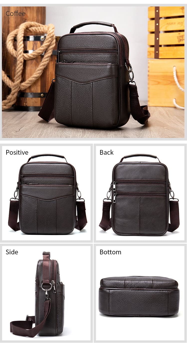 – Αυτή η τσάντα είναι κατάλληλη για άνδρες και είναι ένα μέγεθος που ταιριάζει σε όλους. Το casual αλλά εκλεπτυσμένο στυλ του το καθιστά ιδανικό για καθημερινή χρήση και το γνήσιο δερμάτινο υλικό προσθέτει μια νότα πολυτέλειας.