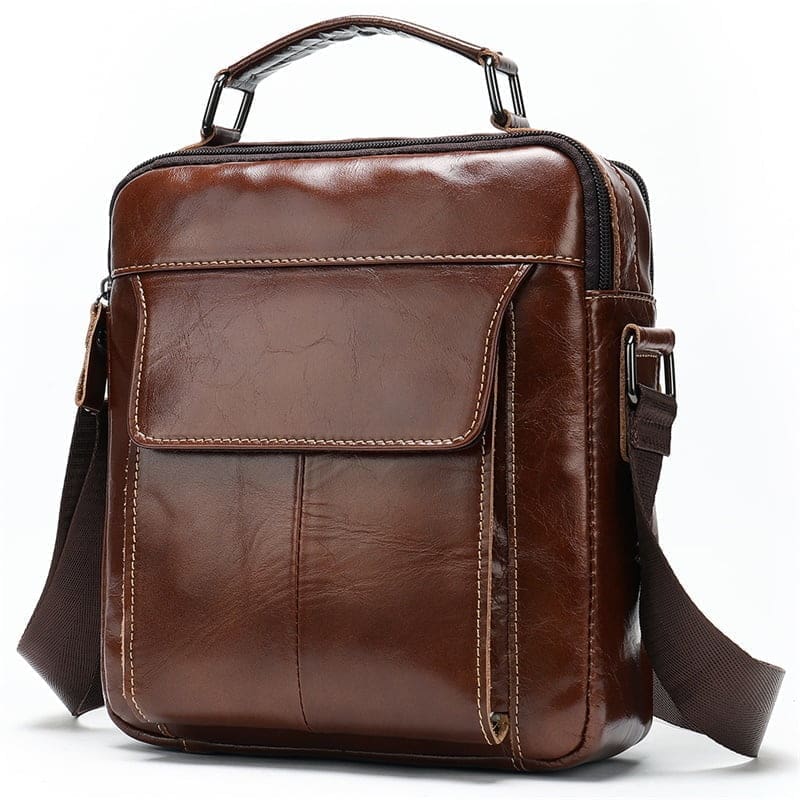 – Σας παρουσιάζουμε την απόλυτη δερμάτινη τσάντα για τον σύγχρονο άνδρα – την τσάντα χιαστί από γνήσιο δέρμα της Cardinal. Κατασκευασμένη από ειδικά επεξεργασμένο δέρμα, αυτή η τσάντα διαθέτει μια μοναδική εμφάνιση που γίνεται καλύτερη με τον καιρό. Με ένα μακρύ λουρί ώμου διαστάσεων περίπου 128 cm, αυτή η τσάντα μπορεί να φορεθεί ως χιαστί ή πάνω από τον ώμο για μια ευέλικτη και casual εμφάνιση.