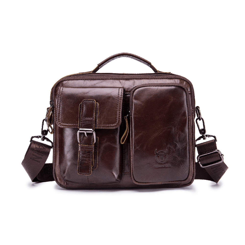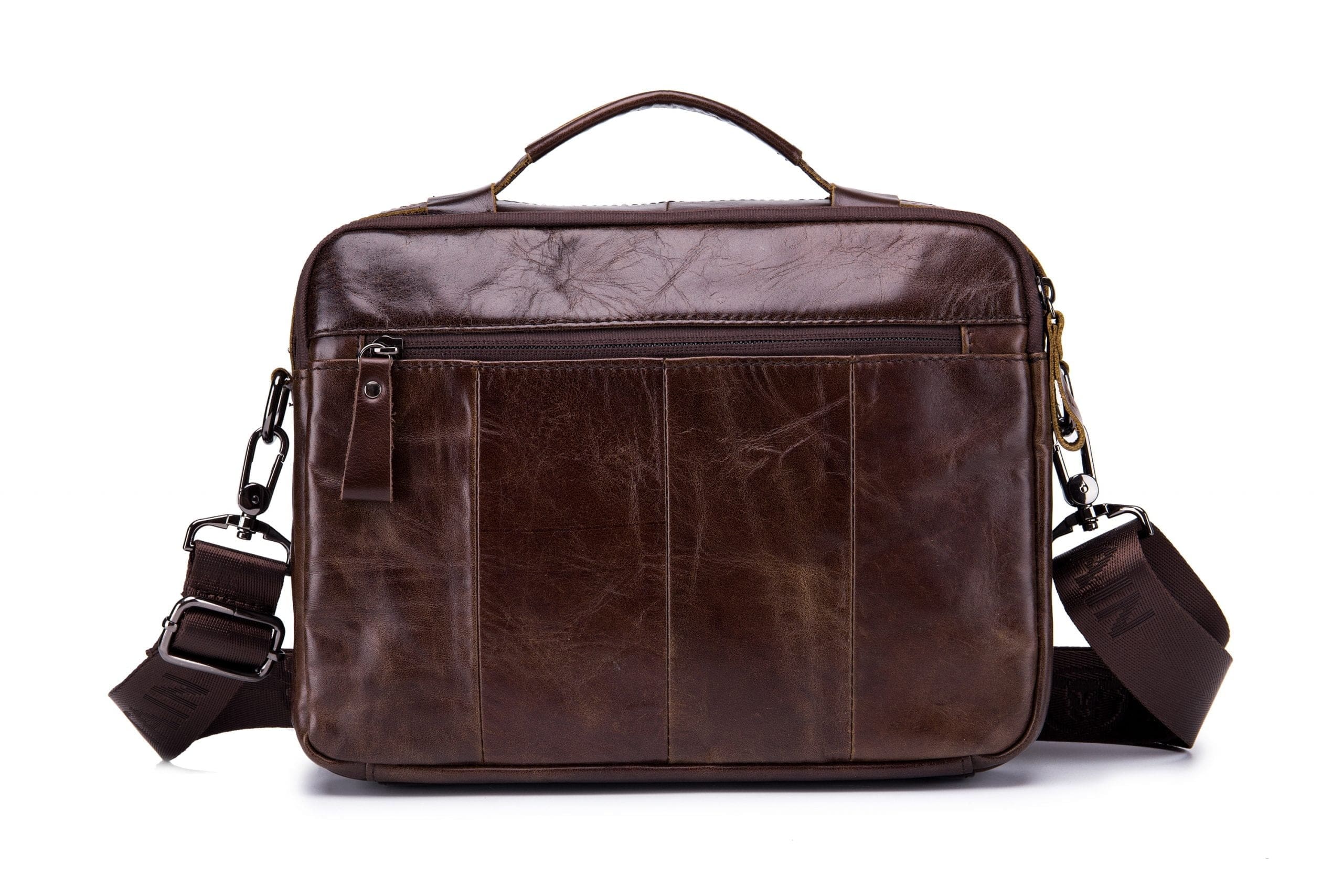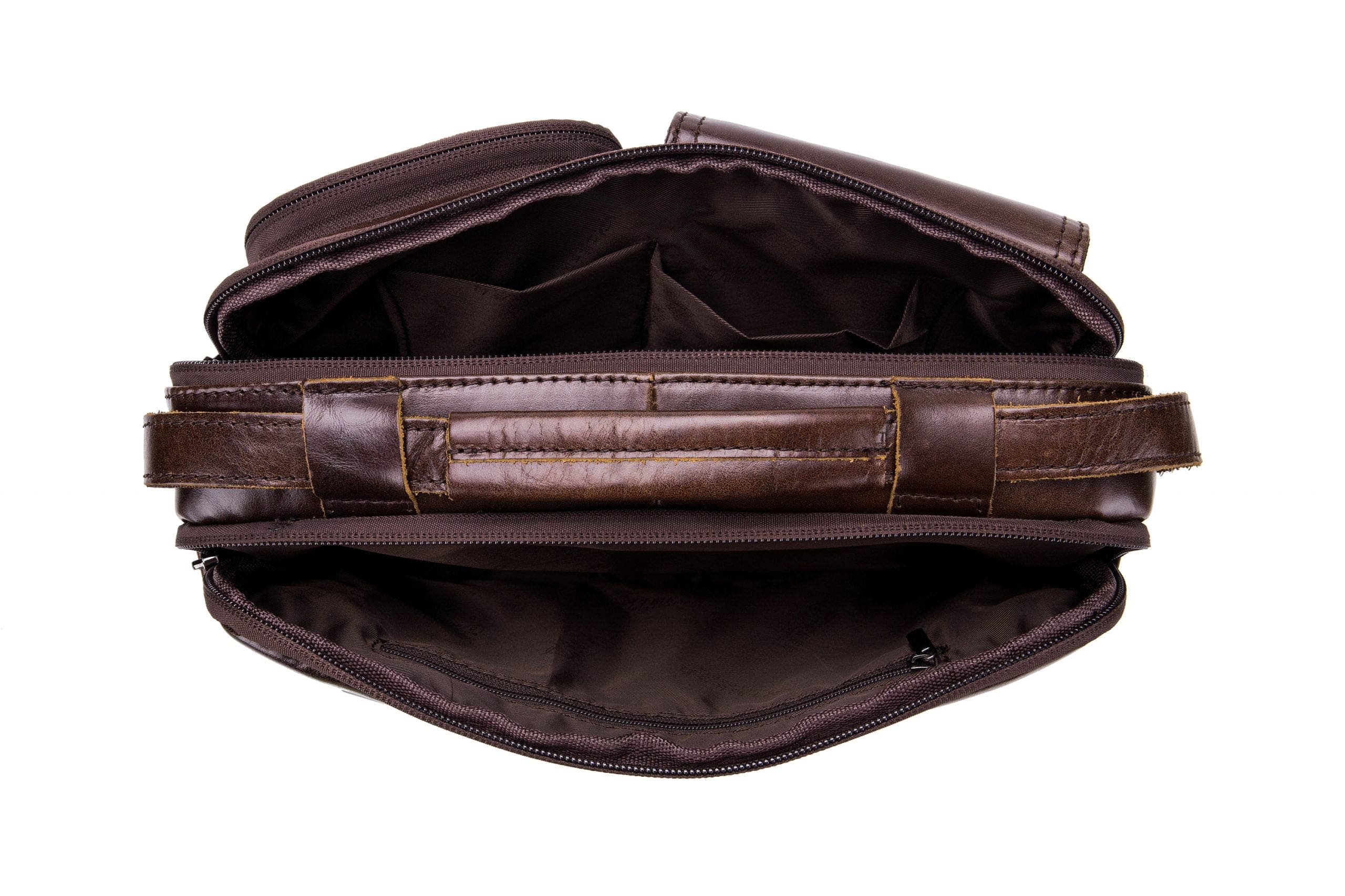 – Αναβαθμίστε το στυλ σας με αυτή την υπέροχη τσάντα μόδας από γνήσιο δέρμα ειδικής επεξεργασίας διετούς παλαίωσης. Η υψηλής ποιότητας κατασκευή και η εξαιρετική ποιότητα του δέρματος την κάνουν ιδανική για κάθε περίσταση. Αποτελεί μια διθέσια τσάντα αγγελιοφόρων, χιαστί τσάντα, τσάντα ώμου, δερμάτινο μικρό χαρτοφύλακα και μονοθέσια τσάντα με χειρολαβή. Επιπλέον, διαθέτει εσωτερική τσέπη με φερμουάρ, τσέπη για το τηλέφωνο, πορτοφόλι και θήκη για υπολογιστή, καθώς και δύο εξωτερικές τσέπες και τσέπη με φερμουάρ στο πίσω μέρος.