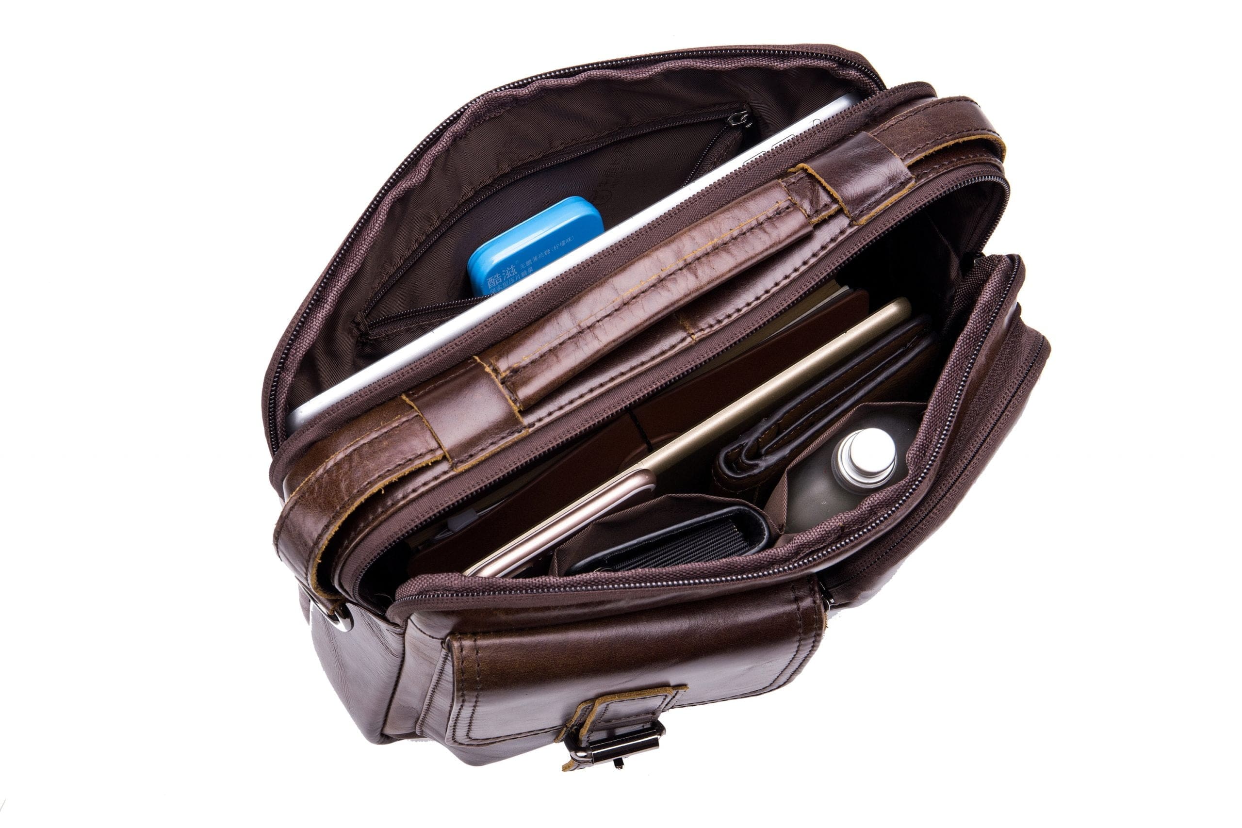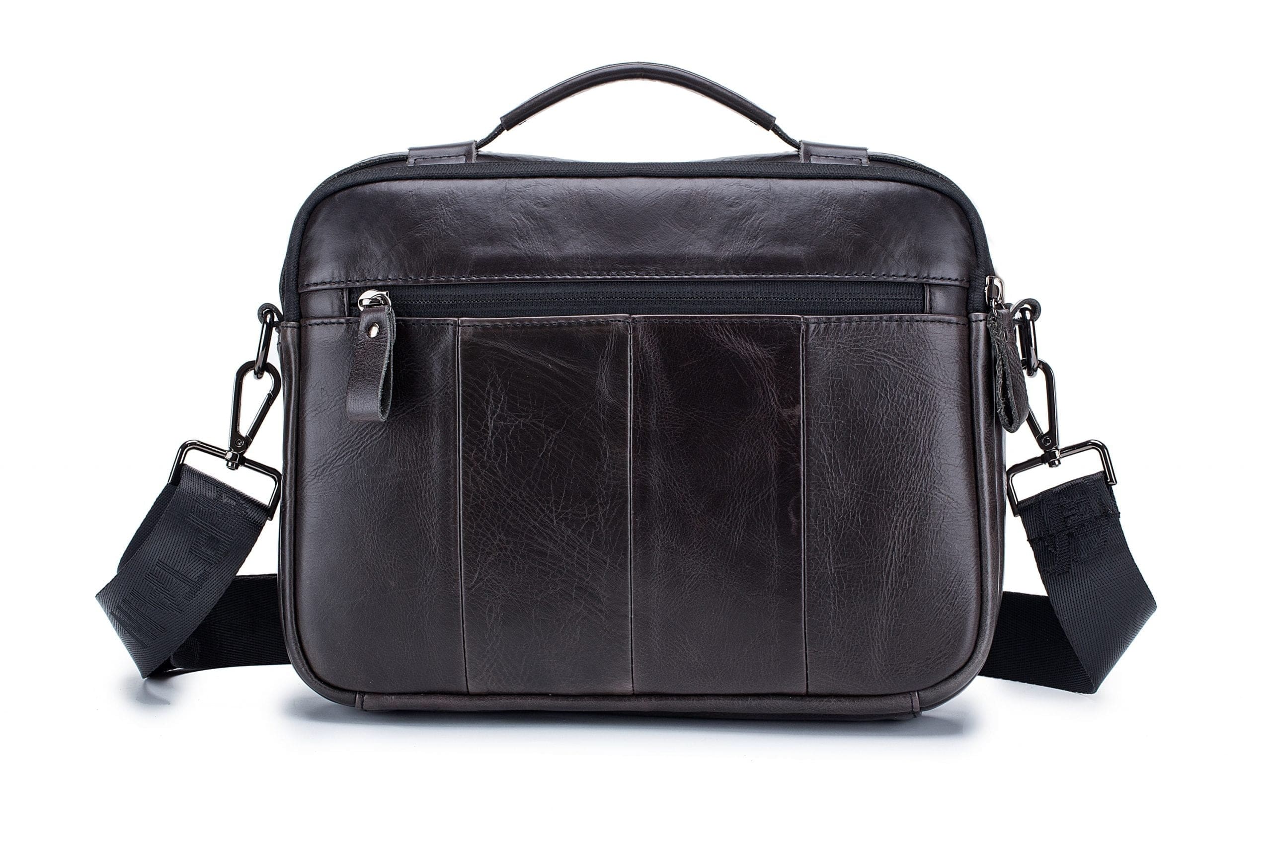 – Αναβαθμίστε το στυλ σας με αυτή την υπέροχη τσάντα μόδας από γνήσιο δέρμα ειδικής επεξεργασίας διετούς παλαίωσης. Η υψηλής ποιότητας κατασκευή και η εξαιρετική ποιότητα του δέρματος την κάνουν ιδανική για κάθε περίσταση. Αποτελεί μια διθέσια τσάντα αγγελιοφόρων, χιαστί τσάντα, τσάντα ώμου, δερμάτινο μικρό χαρτοφύλακα και μονοθέσια τσάντα με χειρολαβή. Επιπλέον, διαθέτει εσωτερική τσέπη με φερμουάρ, τσέπη για το τηλέφωνο, πορτοφόλι και θήκη για υπολογιστή, καθώς και δύο εξωτερικές τσέπες και τσέπη με φερμουάρ στο πίσω μέρος.