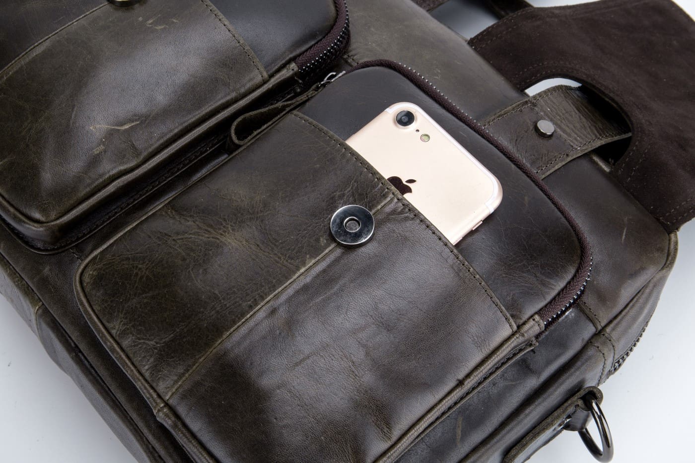 – Η τσάντα αυτή είναι ένα απαραίτητο αξεσουάρ για τον σύγχρονο άνδρα με άποψη και γούστο. Κατασκευασμένη από υψηλής ποιότητας γνήσιο δέρμα ειδικής επεξεργασίας διετούς παλαίωσης, αυτή η τσάντα μόδας είναι η τέλεια επιλογή για μια εκλεπτυσμένη και κομψή εμφάνιση. Με τον χιαστή σχεδιασμό της και την μονοθέσια μορφή της, αυτή η τσάντα αγγελιοφόρων είναι ιδανική για τις καθημερινές σας δραστηριότητες.