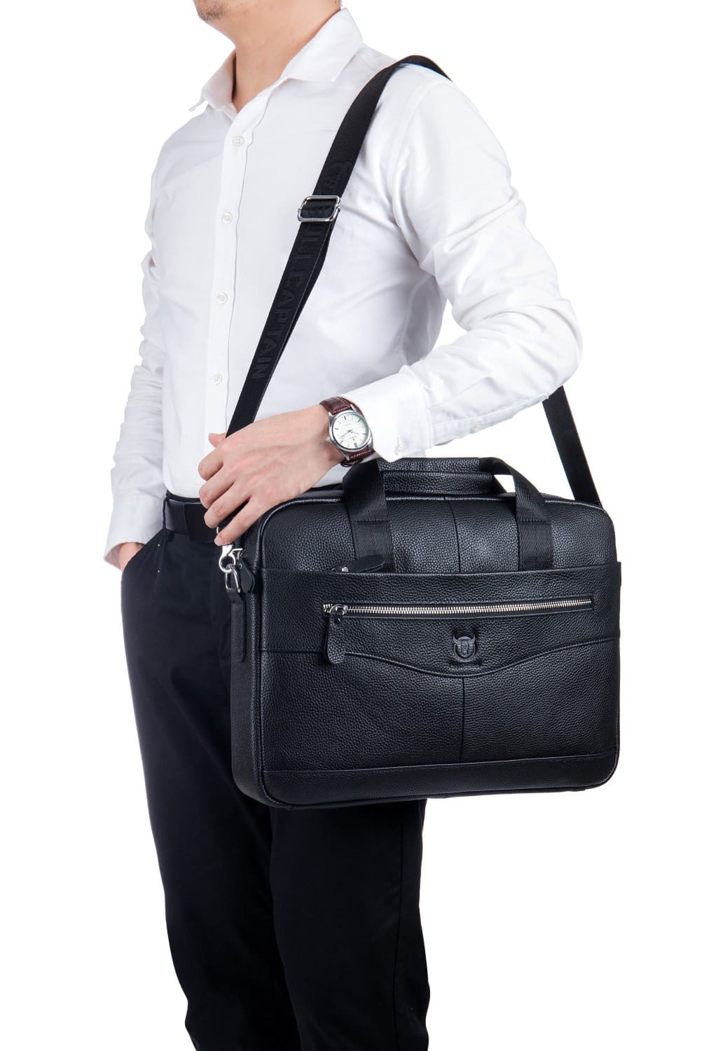 – Ο δερμάτινος χαρτοφύλακας Bull Captain είναι ο τέλειος σύντροφος για τις καθημερινές σας εργασίες και ταξίδια. Κατασκευασμένος από υψηλής ποιότητας γνήσιο δέρμα με ειδική επεξεργασία διετούς παλαίωσης, αυτός ο χαρτοφύλακας είναι ανθεκτικός και στυλάτος. Εξοπλισμένος με χειρολαβή και ιμάντα ώμου, μπορείτε να τον κρατάτε ή να τον φοράτε όπως εσείς επιθυμείτε.