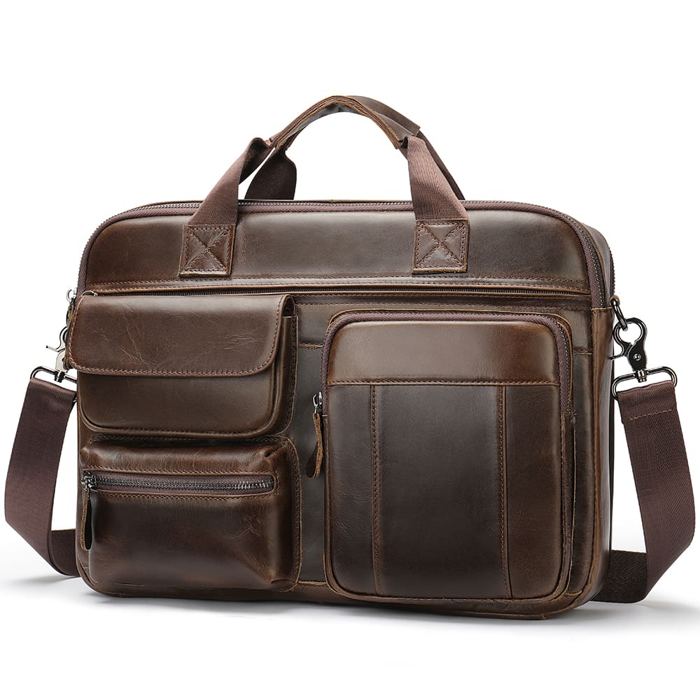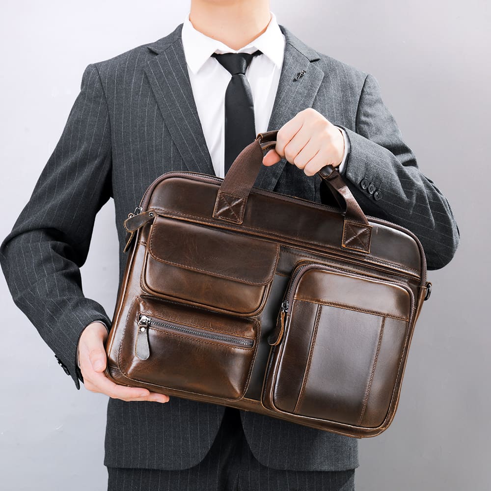 – Αυτός ο χαρτοφύλακας είναι κατασκευασμένος από υψηλής ποιότητας γνήσιο δέρμα ειδικής επεξεργασίας διετούς παλαίωσης. Αυτό το δέρμα έχει υποστεί μια ειδική διαδικασία για να του δώσει ένα μοναδικό και αυθεντικό στυλ, με εμφανείς σημάδια παλαίωσης. Η τσάντα είναι μοντέρνα και ευέλικτη, μπορεί να φορεθεί ως χιαστί τσάντα, τσάντα ώμου ή δερμάτινη μονοθέσια τσάντα με χειρολαβή.
