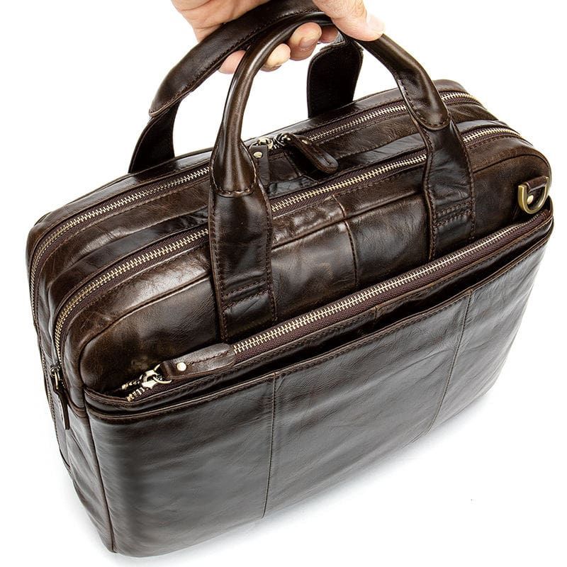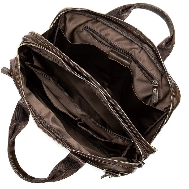 – Παρουσιάζουμε την τέλεια τσάντα για τον άντρα την υψηλής ποιότητας τσάντα μας από γνήσιο δέρμα. Φτιαγμένη με ειδική επεξεργασία για να της δώσει μια παλαιωμένη εμφάνιση δύο ετών, αυτή η τσάντα αποπνέει πολυτέλεια και στυλ. Με τη σχεδίασή του τρία σε ένα, μπορεί να χρησιμοποιηθεί ως τσάντα ταχυδρόμου, τσάντα χιαστί και τσάντα ώμου, καθιστώντας το ευέλικτο για κάθε περίσταση. Η εσωτερική και εξωτερική δομή της τσάντας διαθέτει εσωτερική τσέπη με φερμουάρ, τσέπη τηλεφώνου, τσέπη για πορτοφόλι, θήκη για φορητό υπολογιστή 15,6'' , καθώς και 4 εξωτερικές τσέπες με φερμουάρ για μεγαλύτερη οργάνωση. Ο ιμάντας έχει μήκος περίπου 128 cm, παρέχοντας άνετη εφαρμογή σε όλους τους σωματότυπους.