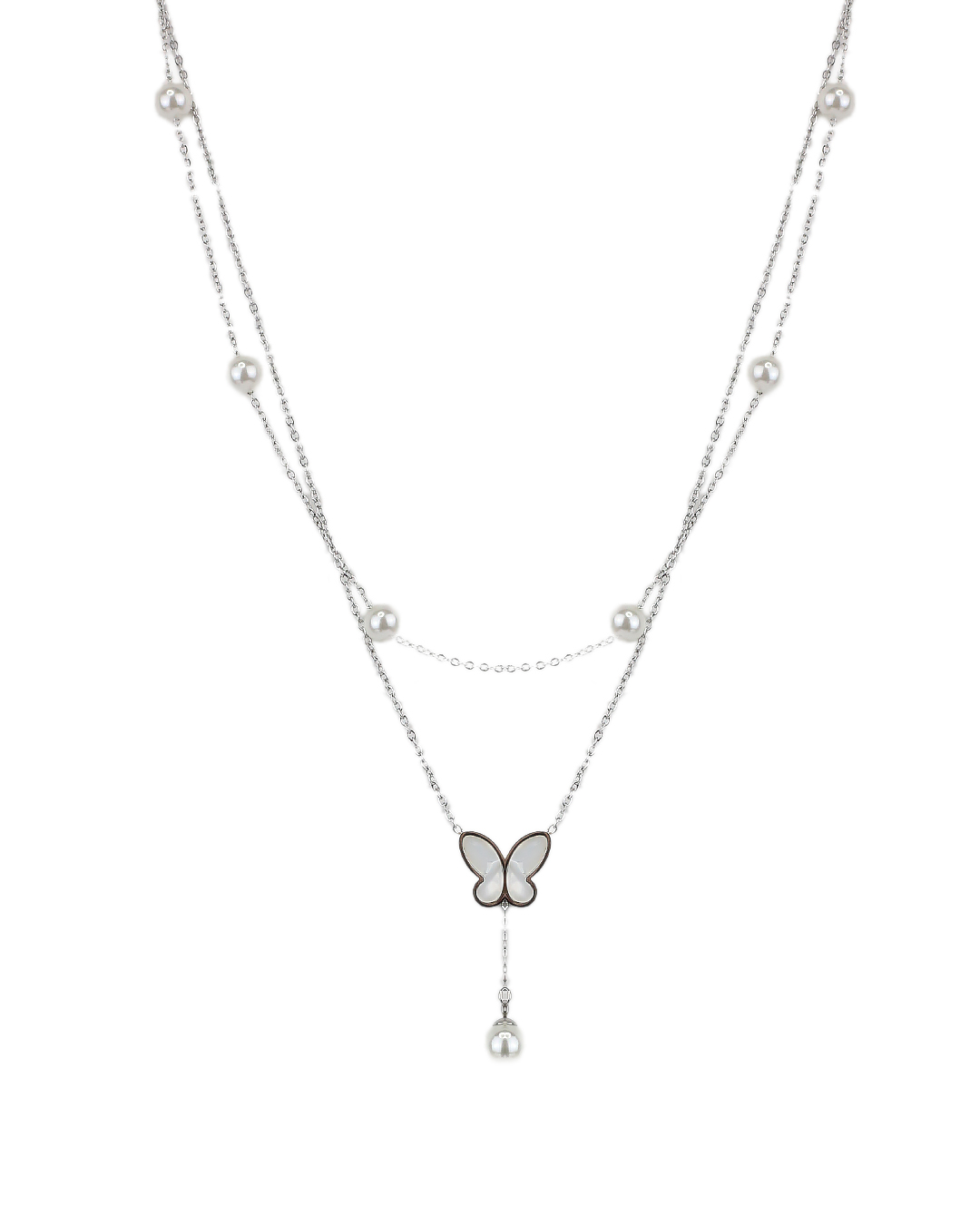 Διπλή αλυσίδα λαιμού με πεταλούδα DJ-008 – Ασημί