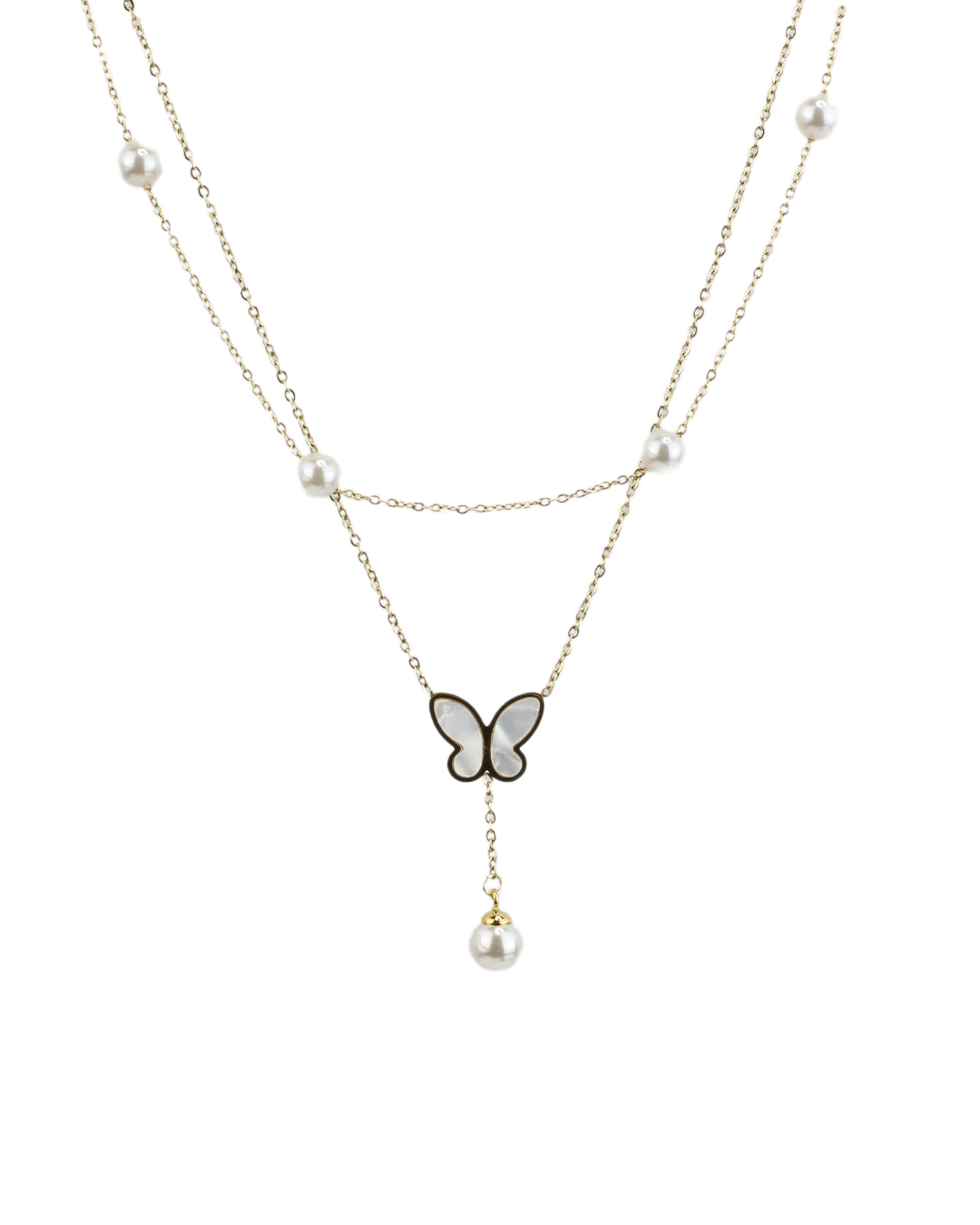 Διπλή αλυσίδα λαιμού με πεταλούδα DJ-008 – Χρυσό