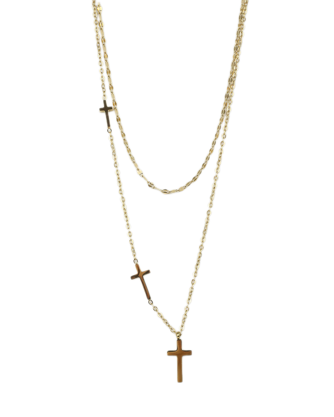 Διπλή αλυσίδα λαιμού με σταυρό DJ-013 - Χρυσό