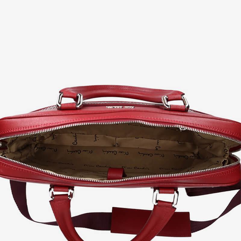Επαγγελματική δερμάτινη τσάντα της εταιρείας Pierre Cardin.Διαθέτει μια κεντρική θέση που κλείνει με φερμουάρ και έχει μικρότερους βοηθητικούς χώρους καθώς και θήκη για laptop έως 14″.Στο εξωτερικό μέρος υπάρχει μια μεγάλη τσέπη με φερμουάρ. Η τσάντα έχει χερούλια για κράτημα στο χέρι και αποσπώμενο ιμάντα ώμου. Μια λεπτή και κομψή τσάντα δουλειάς ιδανική να καλύψει όλες σας τις ανάγκες από έγγραφα και φακέλους μέχρι laptop.