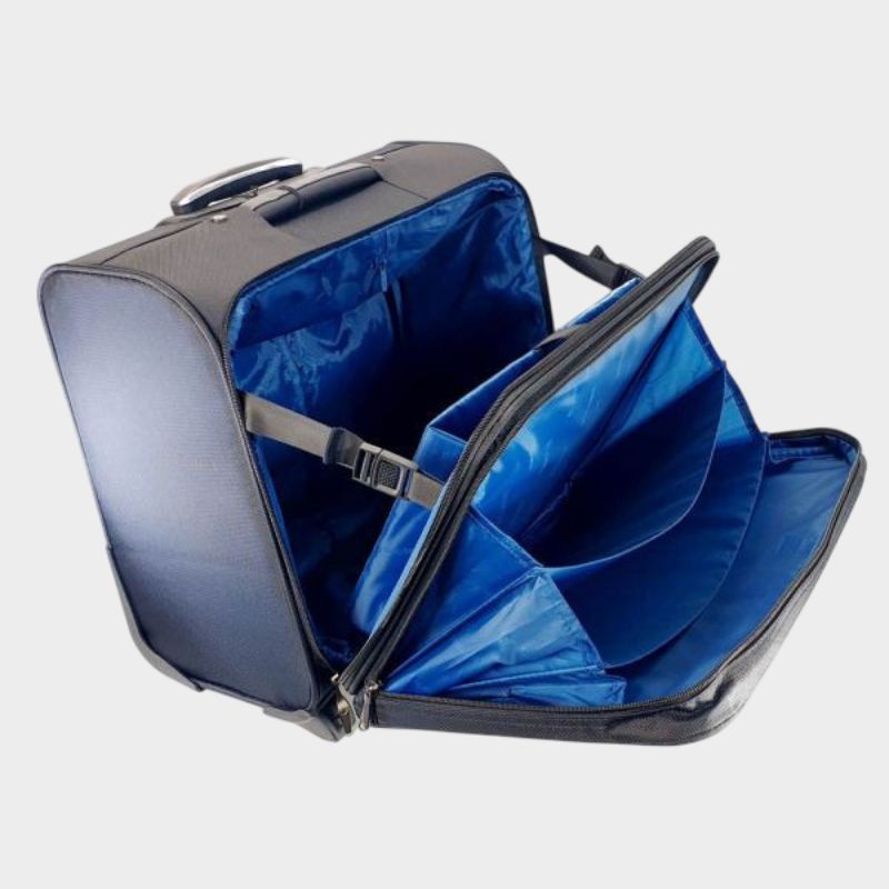 Δύο ενσωματώμενες ρόδες στον κορμό της τσάντας από σκληρό, μασίφ πλαστικό με ρουλεμάν.