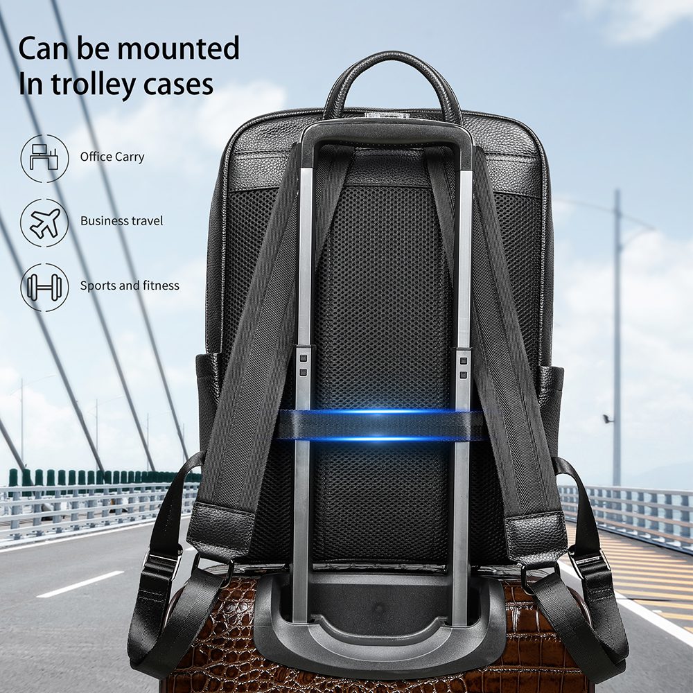Επαγγελματικό Δερμάτινο Σακίδιο Πλάτης ιδανικό για επαγγελματικά ταξίδια και καθημερινή χρήση. Διαθέτει θήκες για laptop έως 15″, έγγραφα, κινητό και μπουκάλι. Με ενσωματωμένο ιμάντα trolley, εργονομικούς ιμάντες ώμου και μοντέρνο design, είναι η πρακτική και στυλάτη λύση on-the-go.