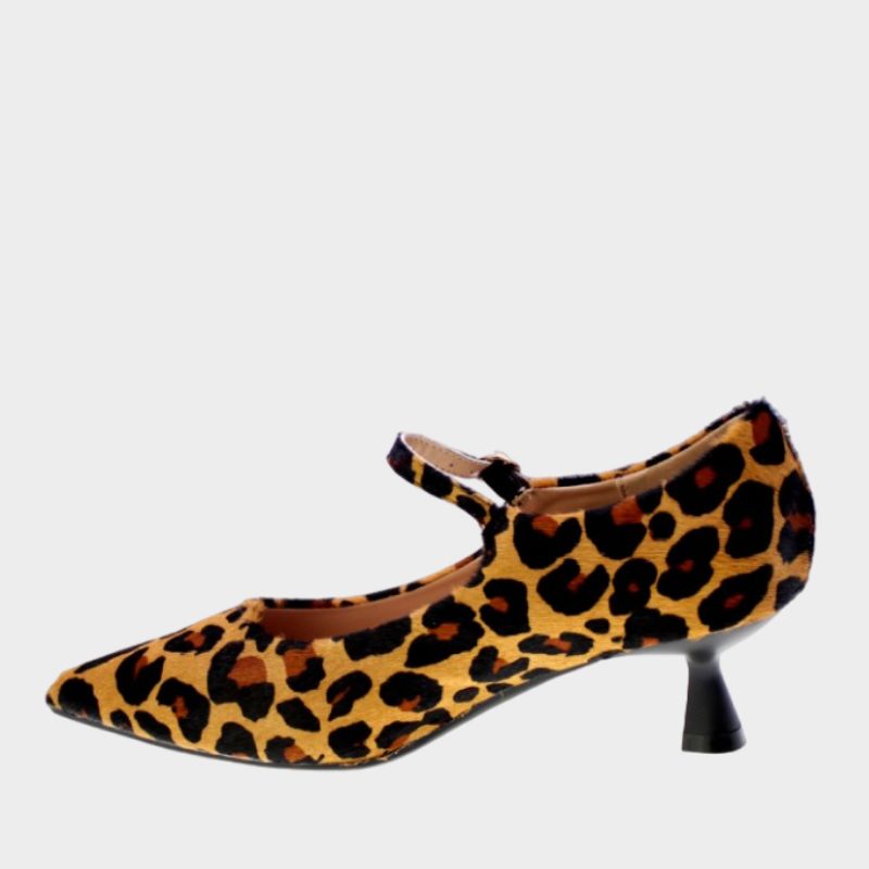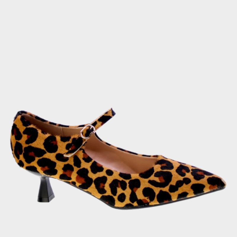 Μοντέρνες, γυναικείες γόβες της εταιρίας Francesco Milano, φτιαγμένες σε λεοπάρ μοτίβο, με ρυθμιζόμενο λουράκι με αγκράφα, ενώ ο εσωτερικός του χώρος είναι κατασκευασμένος από vegan υλικά. Το χαμηλό, σταθερό τακούνι των 5 cm σε συνδυασμό με τη μαλακή σόλα από αντιολισθητική γόμα προσδίδει άνεση και στυλ. Ένα ιδανικό παπούτσι για εντυπωσιακές εμφανίσεις με μια πινελιά άγριας κομψότητας.