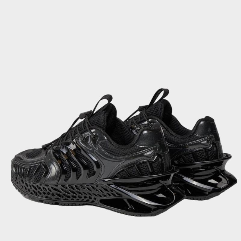 Τα sneakers The Thunder Stroke Gen.X.02. της συλλογής PLEIN SPORT, είναι σχεδιασμένα από υψηλής ποιότητας υφασμάτινα και συνθετικά υλικά, συνδυάζοντας κομψότητα με ανθεκτικότητα. Η αντιολισθητική σόλα από καουτσούκ προσφέρει μακροχρόνια αντοχή στη φθορά, ενώ το εσωτερικό τους είναι κατασκευασμένο για άνεση και υγιεινή. Η ενίσχυση στη φτέρνα σταθεροποιεί το πόδι, προσφέροντας ασφάλεια σε κάθε βήμα, ενώ τα κορδόνια επιτρέπουν τέλεια εφαρμογή. Ένα εξαιρετικό κομμάτι για καθημερινή χρήση με διακριτικές διακοσμητικές λεπτομέρειες που αναβαθμίζουν το στυλ σας.