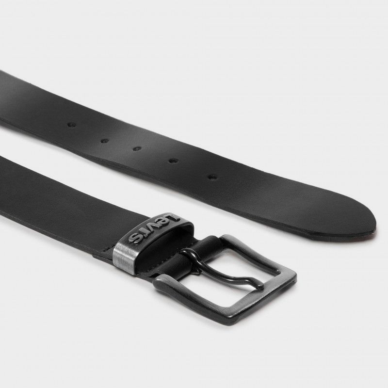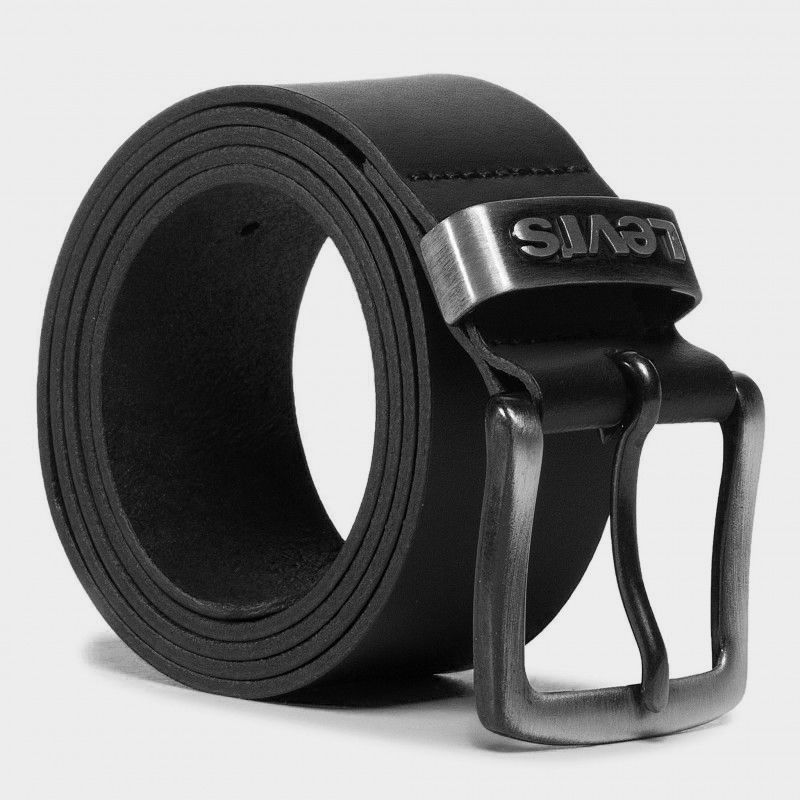 Δερμάτινη ζώνη Levi’s από γνήσιο δέρμα σε μαύρο χρώμα. Το σχέδιο ολοκληρώνεται με τετράγωνη αγκράφα και ανάγλυφο λογότυπο της εταιρίας.