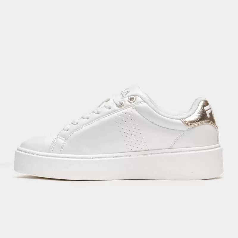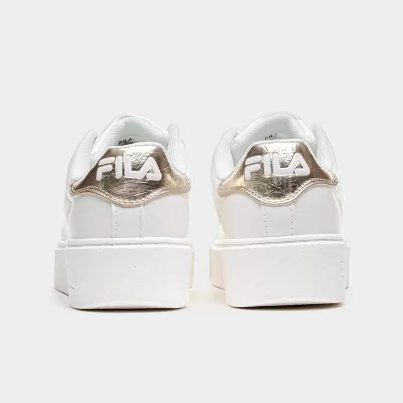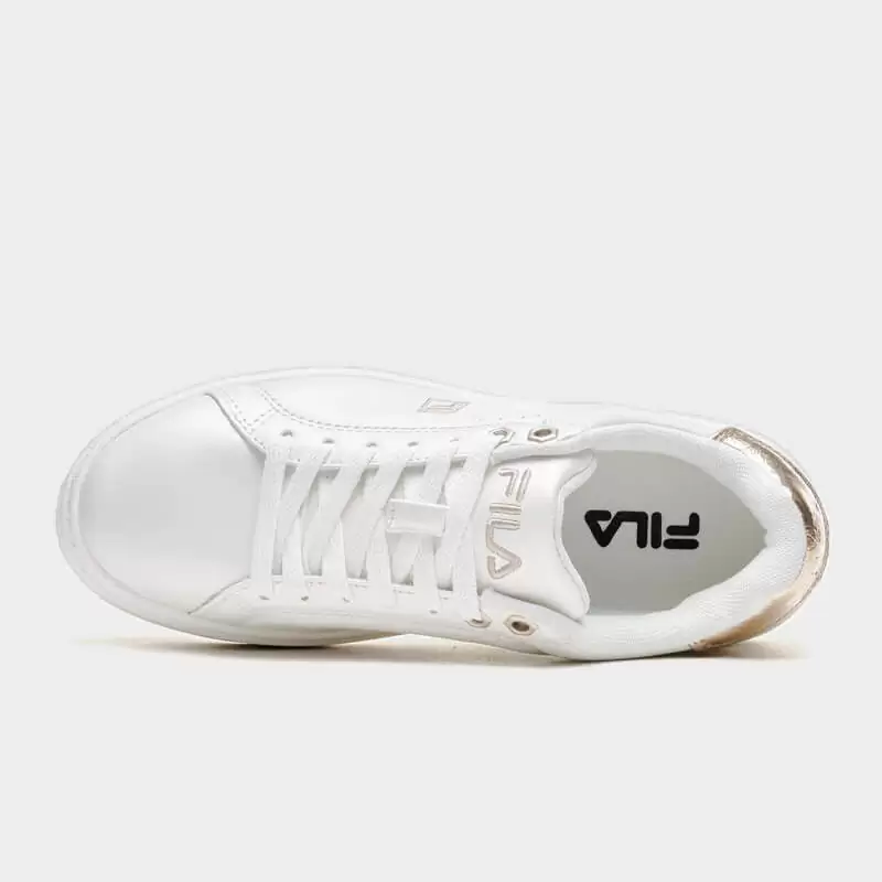 Sneaker της Fila με άνω μέρος από οικολογικό δέρμα σε άσπρο χρώμα με χρυσές λεπτομέρειες. Διαθέτει άνετο εσωτερικό πάτο και εξωτερική σόλα από καουτσούκ. Ένα casual παπούτσι για τις καθημερινές σας δραστηριότητες.