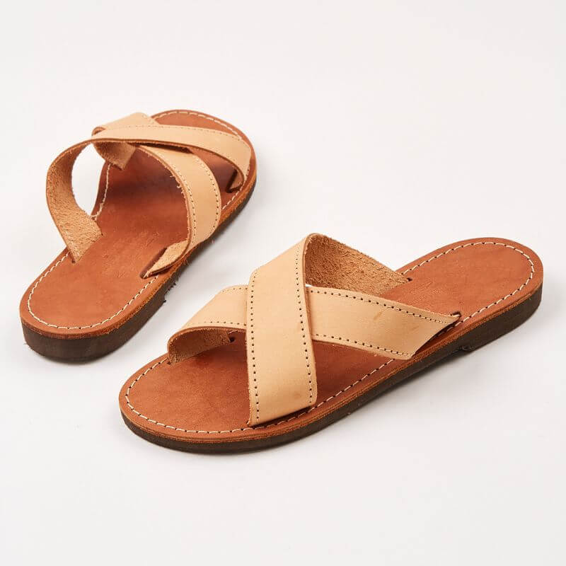 Χειροποίητη παντόφλα Ελληνικής κατασκευής από γνήσιο δέρμα με χιαστί φάσες. Μια ιδανική λύση για της καλοκαιρινές σας εμφανίσεις.