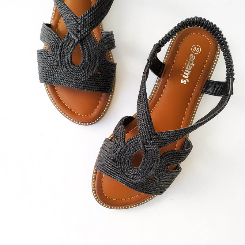 Το γυναικείο σανδάλι της εταιρίας Adam’s είναι ένα μοντέρνο σανδάλι από οικολογικό δέρμα . Οι μαλακοί του πάτοι προσφέρουν ένα άνετο και αναπαυτικό περπάτημα και κλείνει με λάστιχο για ευκολότερη χρήση . Ιδιαίτερο χαρακτηριστικό είναι οι γεωμετρικές λεπτομέρειες από σχοινί. Το σανδάλι αυτό θα σας προσφέρει κομψότητα και στυλ σε κάθε σας περίσταση.