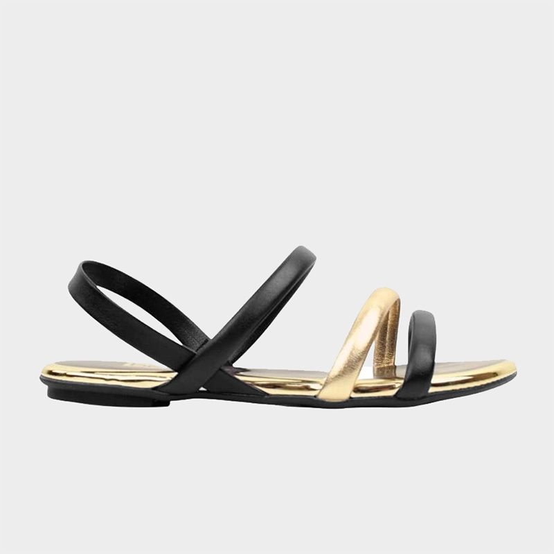 Flat Σανδάλια Με Λουράκια Beira Rio 7982303629 Μαύρο-Χρυσό