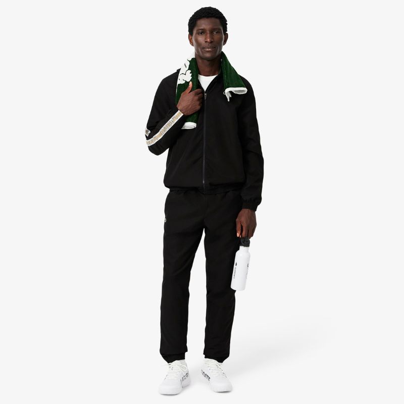 Lacoste ρίγες προς τα κάτω στα μανίκια, τελειώματα με αντίθεση στο κάτω πόδι