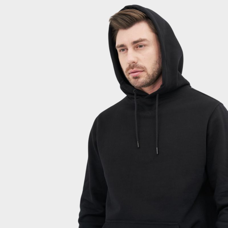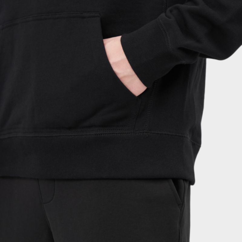 Σύνθεση: 100% βαμβάκι Χρώμα: Μαύρο Εφαρμογή: Κανονική Κουκούλα με κορδόνι Ελαστικές μανσέτες Τσέπη καγκουρό