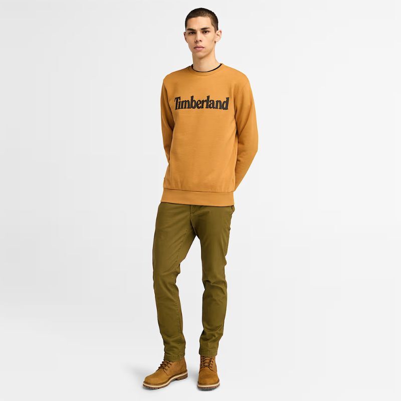 Σύνθεση: 55% βαμβάκι, 45% πολυεστέρας Χρώμα: Κίτρινο Εφαρμογή: Κανονική Στρογγυλή λαιμόκοψη Rib μανσέτες Λογότυπο Timberland στο μπροστινό μέρος