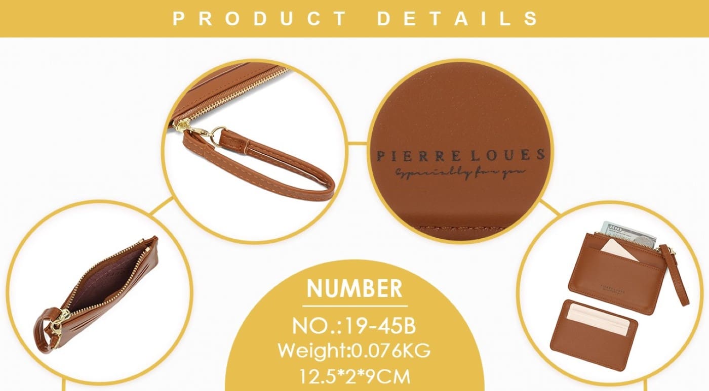 – Χαρακτηριστικά – Η γυναικεία καρτοθήκη Pierre Loues clutch διαθέτει ένα ελαφρύ σχέδιο, κλασικό και κομψό. Το κλείσιμο με φερμουάρ μπορεί να προστατεύσει τα προσωπικά σας αντικείμενα.