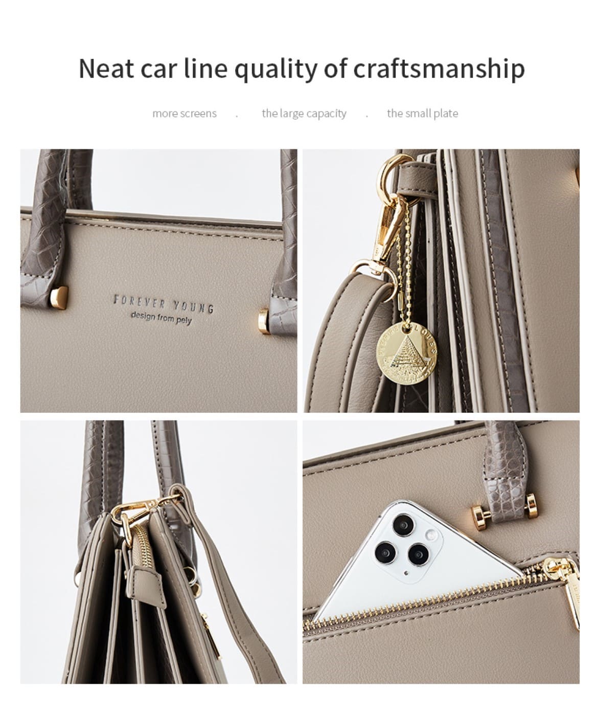 – Οικολογικό δέρμα – Αυτές οι τσάντες είναι κατασκευασμένα από eco leather υψηλής ποιότητας και αντοχής. Η επένδυση από πολυεστέρα είναι μεταξένια και δεν θα χαράξει τα προσωπικά σας αντικείμενα. Τα εξαρτήματα υλικού και ο ιμάντας από mircofiber μπορούν να παραμείνουν σε καλή κατάσταση ακόμα κι αν το χρησιμοποιείτε για μεγάλο χρονικό διάστημα.